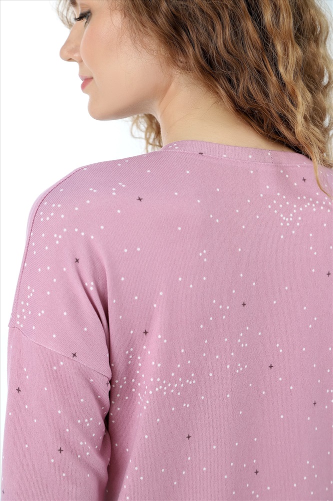 Джемпер – свободного покроя, с длинными втачными рукавам с притачными манжетами и горловиной овальной формы, обработанной втачной планкой.
