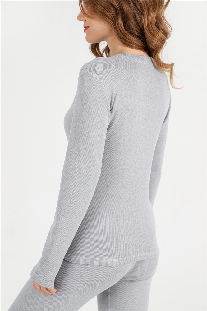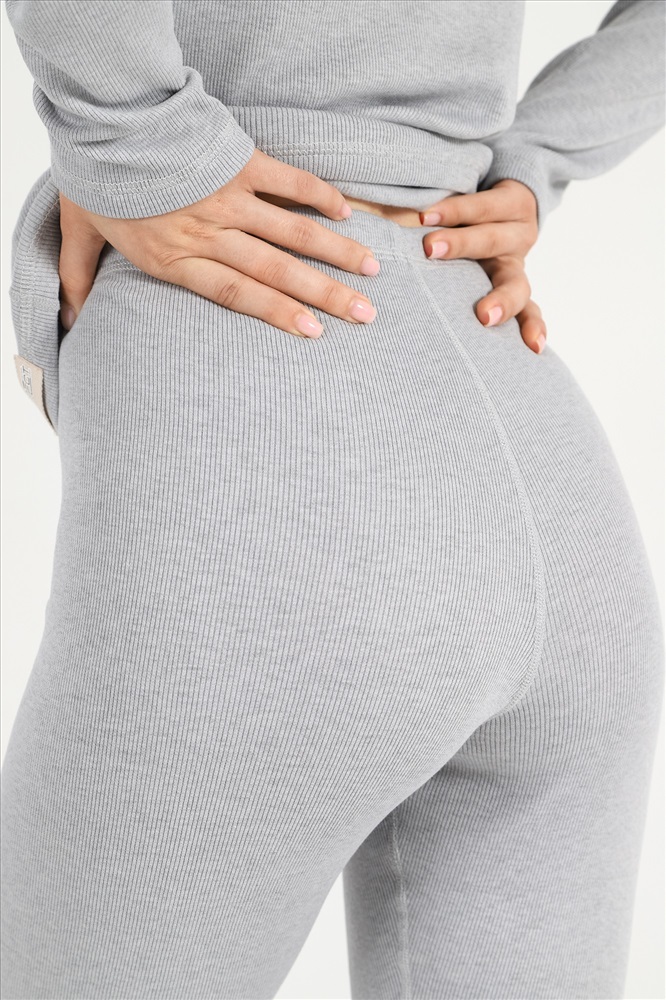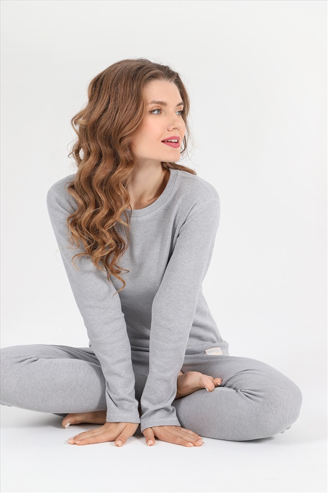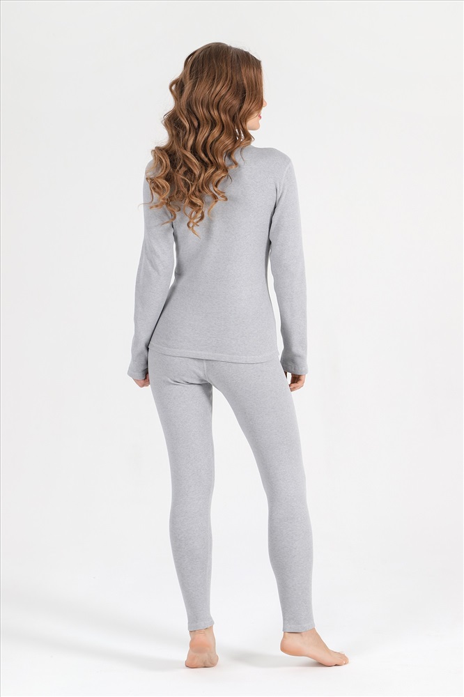 Костюм из гладкокрашеного трикотажного полотна «кашкорсе» с начесом (48% - хлопок, 47% полиэстер,5% лайкра), состоящий из футболки и брюк. Футболка – прилегающего силуэта, с длинными втачными рукавами, горловиной овальной формы, обработанной втачной планкой из основного материала. Подгибка низа изделия и рукавов, шва втачивания планки в горловину обработаны пяти ниточной строчкой в цвет основного материала. Брюки – длинные, прилегающего силуэта, с эластичной тесьмой по талии. Подгибка верхнего и нижних срезов обработаны пяти ниточной строчкой в цвет основного материала.