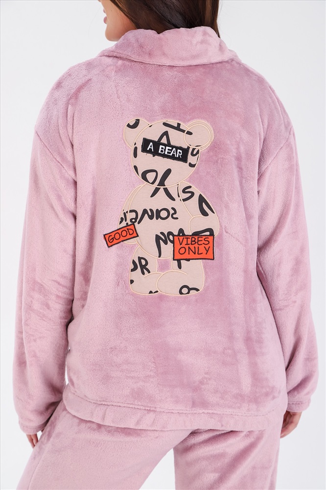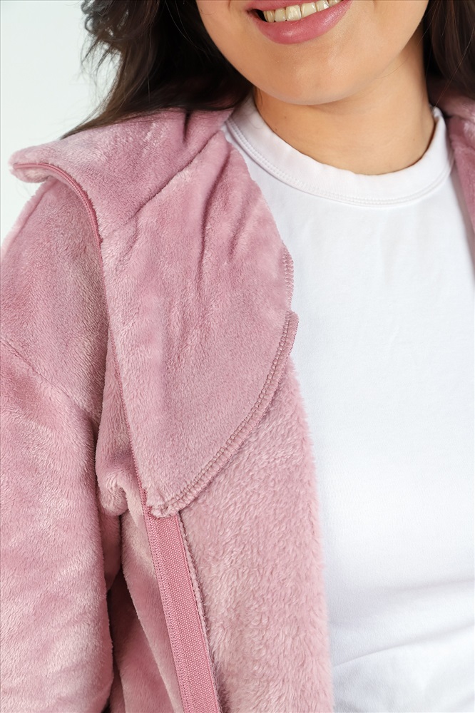 Куртка – из полотна «велсофт», с длинными втачными рукавами, воротником «стойка», карманами в боковых швах, вышивкой на спинке и в нижней части левой полочки, с центральной бортовой застежкой на тесьму «молния». Боковые швы смещены в сторону переда, подгибка низа спинки выполнена с эластичной тесьмой.