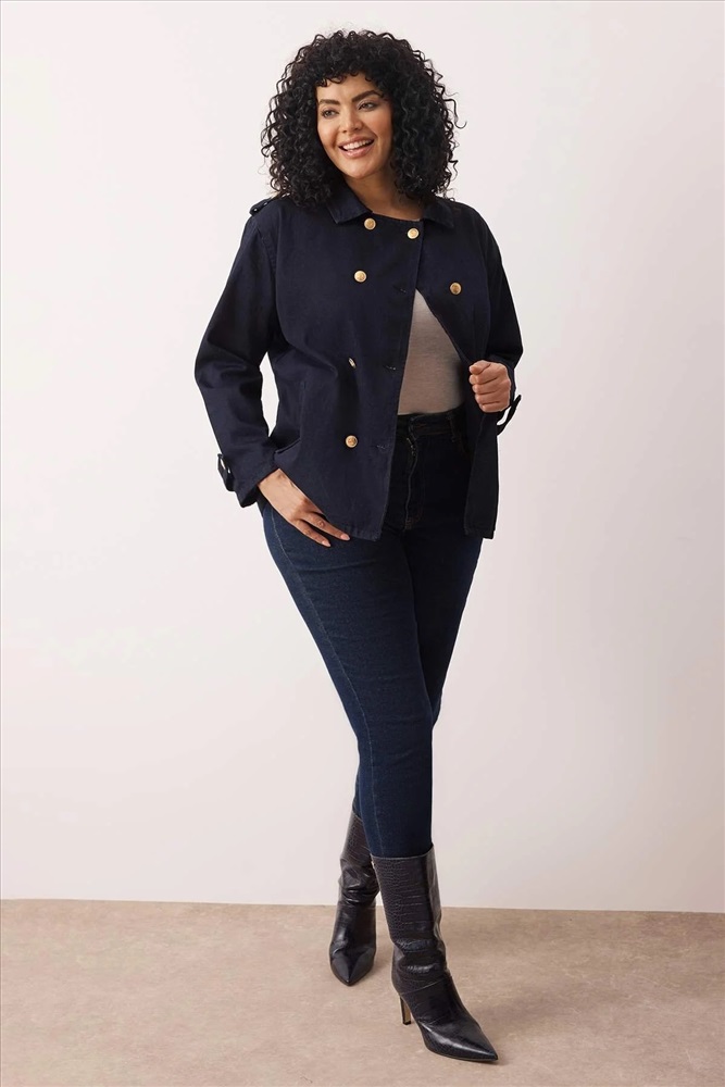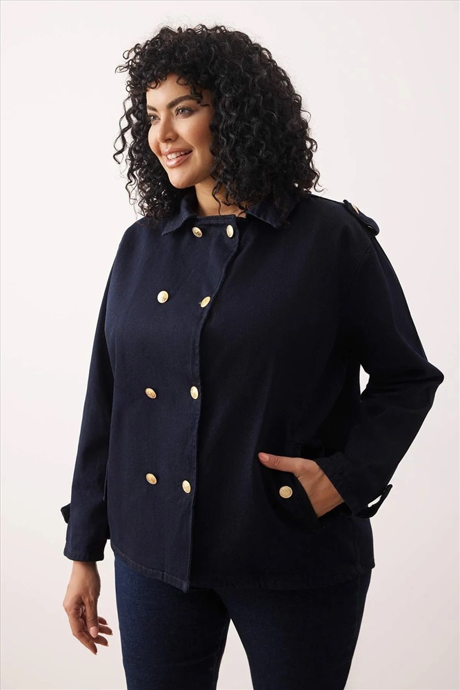 Koyu Mavi Büyük Beden Denim Ceket TBBAW26AG00004