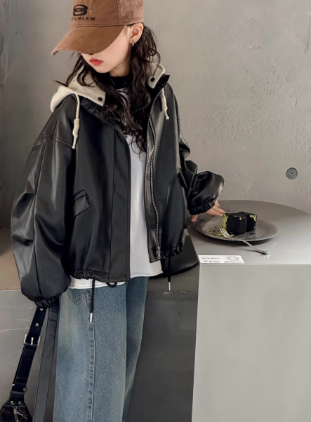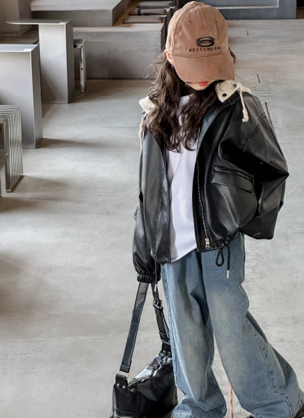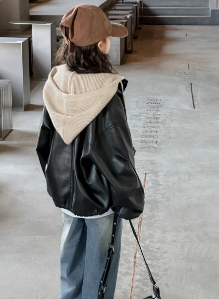 Кожаная куртка для девочек с капюшоном