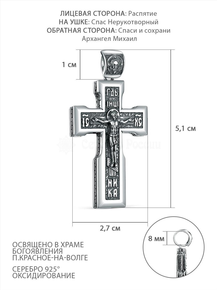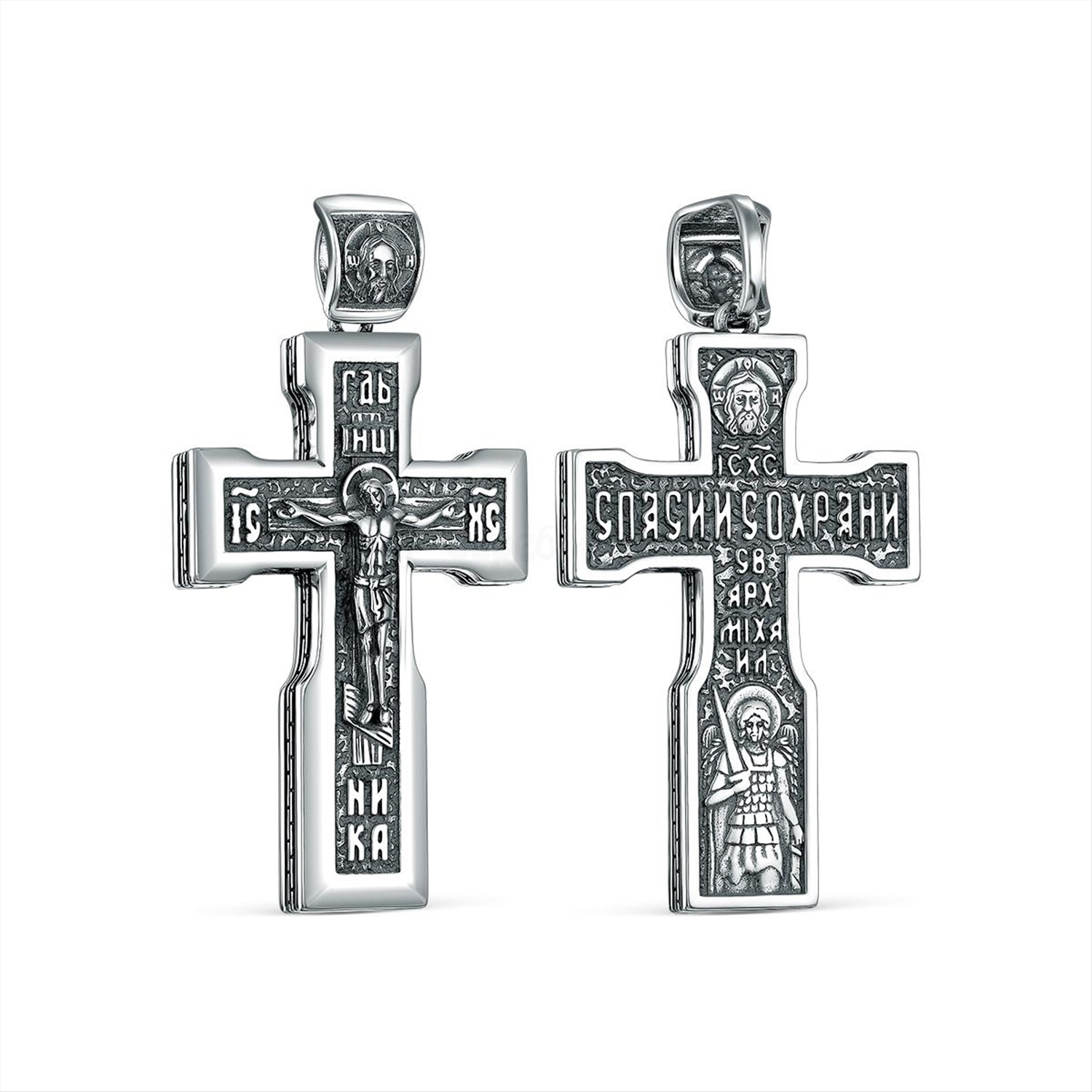 Крест из чернёного серебра - Распятие, Спаc Неpукотвоpный, Спаси и сохрани, Архангел Михаил ПК-038-3ч