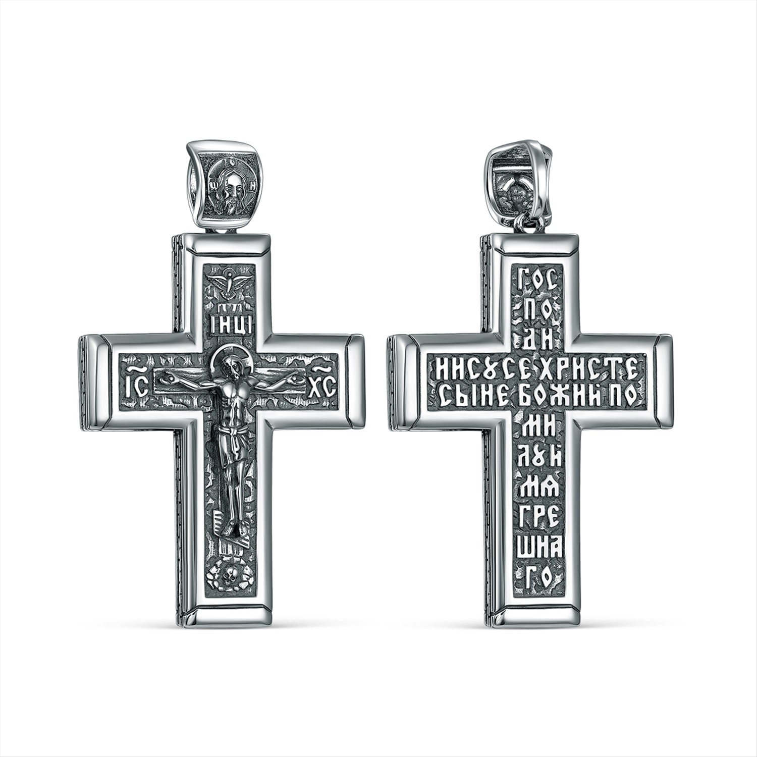 Крест из чернёного серебра - Распятие, Спаc Неpукотвоpный, Спаси и сохрани, Иисусова Молитва ПК-053-3ч