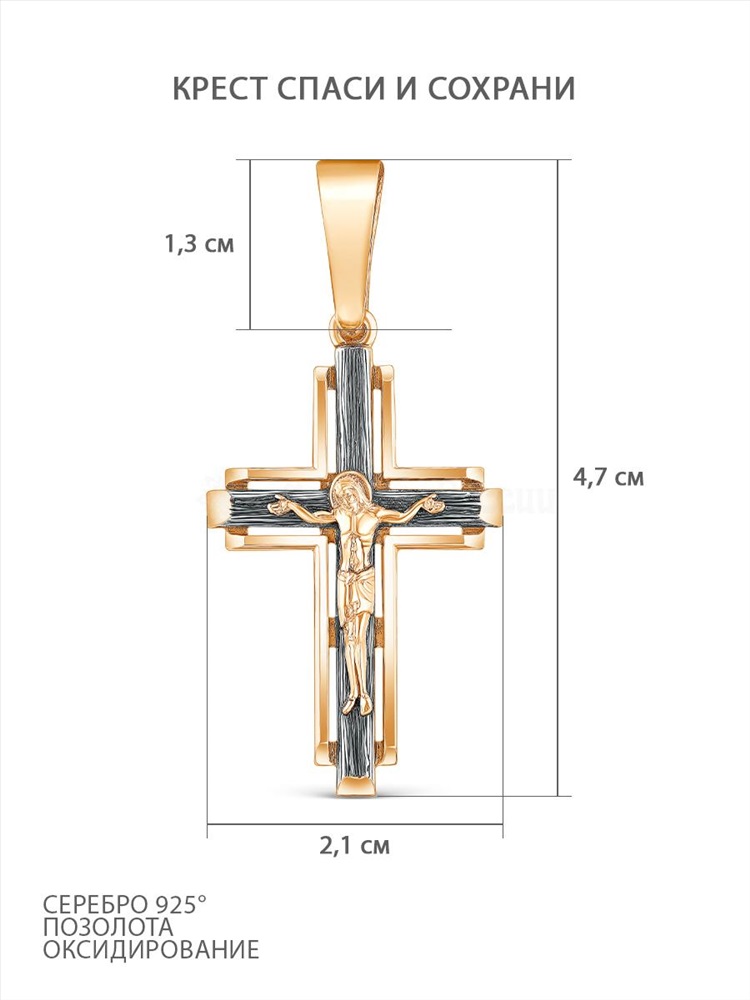 Крест из золочёного серебра с чернением - 4,6 см 925 пробы 3-287чз