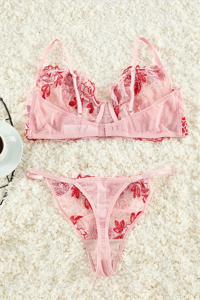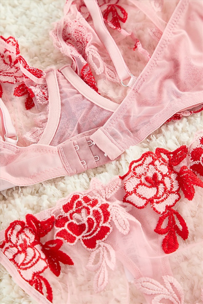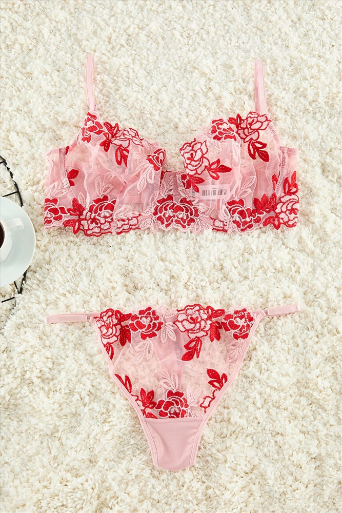 Kırmızı Nakışlı Dantel İp Askılı Kapsız Örme Büyük Beden İç Çamaşırı Takımı TBBAW25DG00000