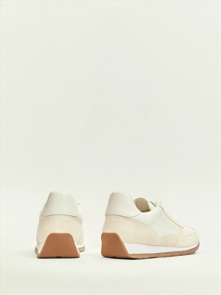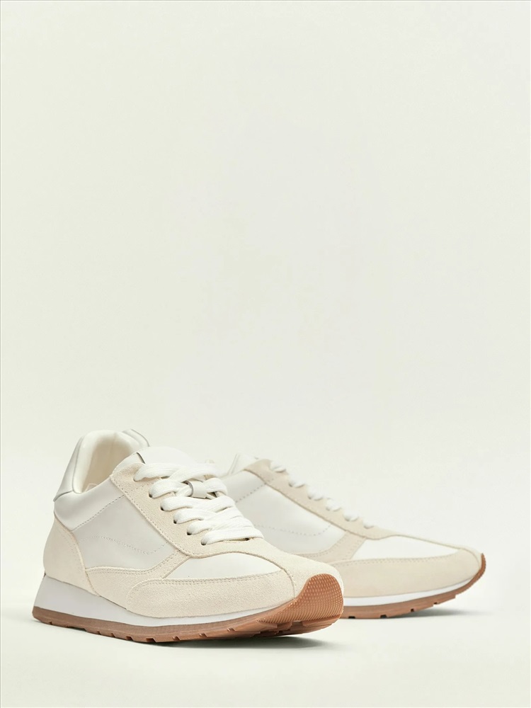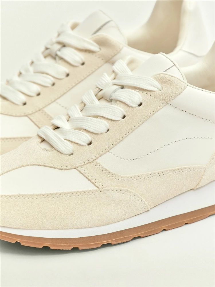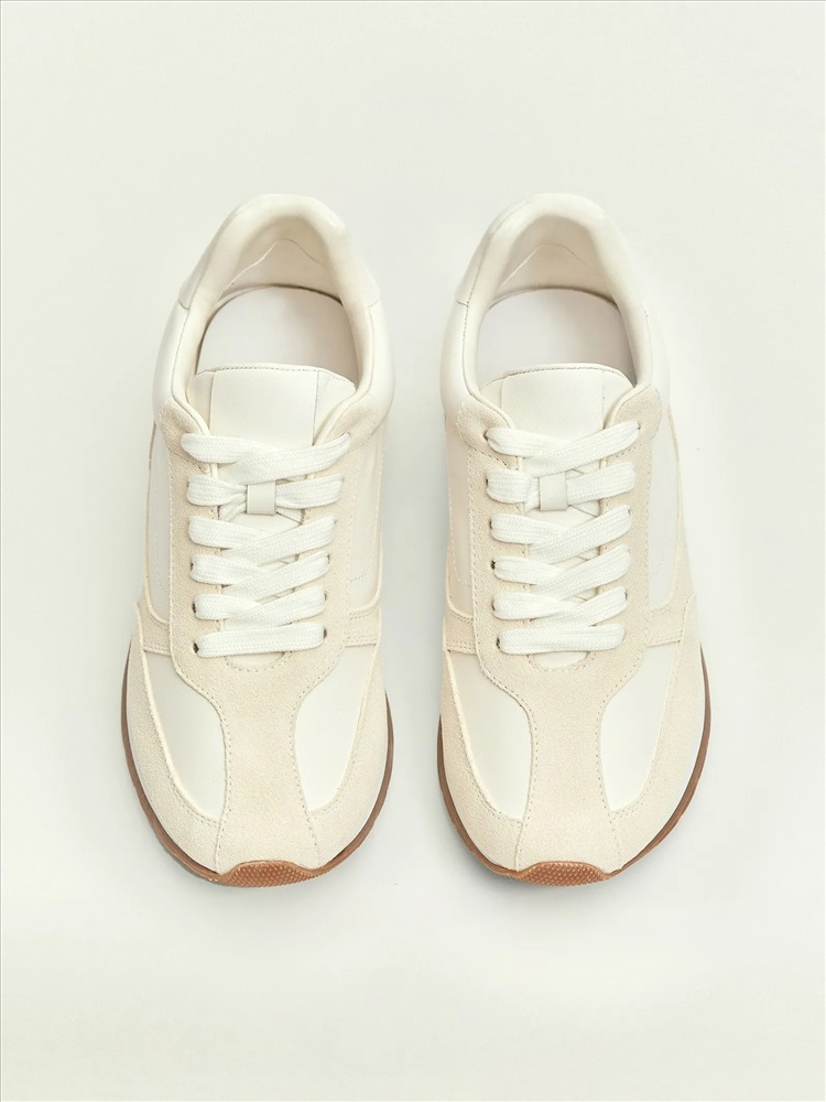 Белые кроссовки из натуральной кожи с противоскользящей рифлёной подошвой. Обеспечивают обеспечивают комфорт на весь день и безопасность при ходьбе.
