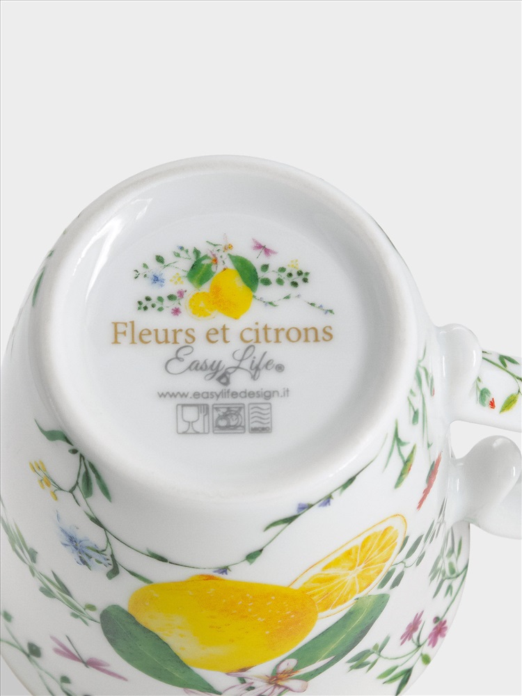 Бренд: EASY LIFE Коллекция: СИЦИЛИЯ Страна бренда: Китай Кружка, 275 мл, фарфор P, белая, Цветы и лимоны, Fleurs et Citrons. Материал: фарфор Рorcelain. Мыть тёплой водой с применением ЖМС. Можно использовать в СВЧ и мыть в посудомоечной машине.