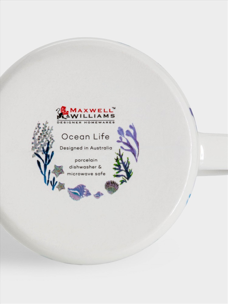 Кружка, 380 мл, фарфор P, бело-синяя, Морская жизнь, Ocean Life. Материал: фарфор Рorcelain. Мыть тёплой водой с применением жидких моющих средств и в посудомоечной машине. Можно использовать в СВЧ.