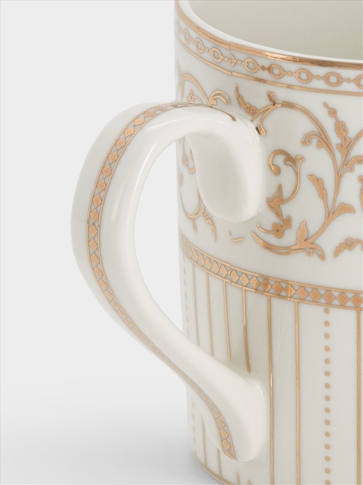 Бренд: POZZI MILANO Коллекция: РЕГУЛЯРНАЯ Кружка, 400 мл, фарфор N, белая, с золотистым орнаментом, Golden. Материал: фарфор New Bone China. Мыть теплой водой с применением мягких моющих средств. Не использовать в СВЧ и в посудомоечной машине.