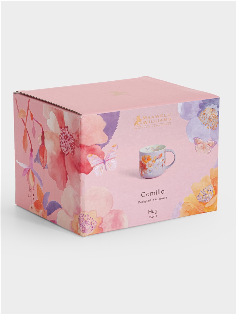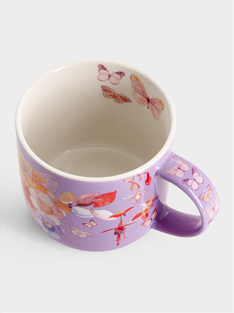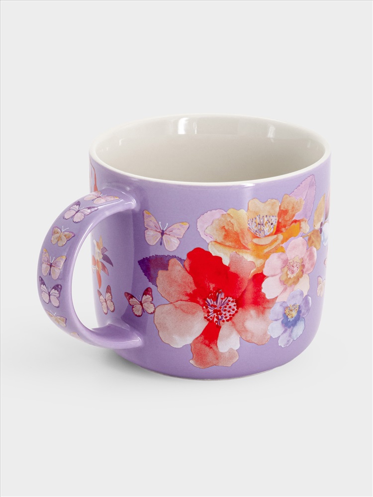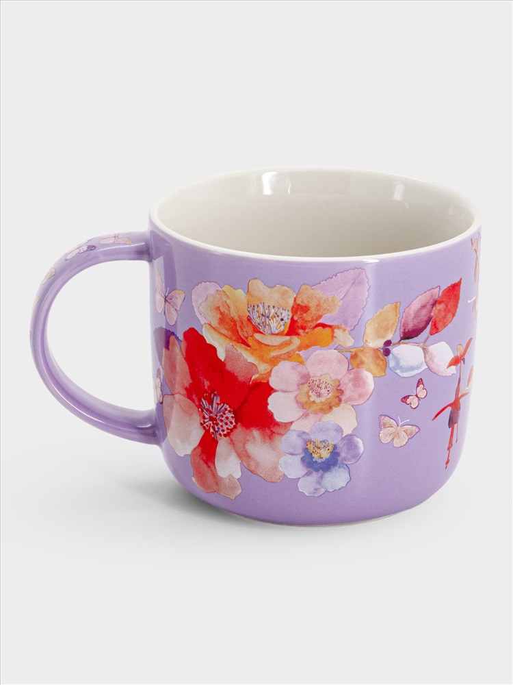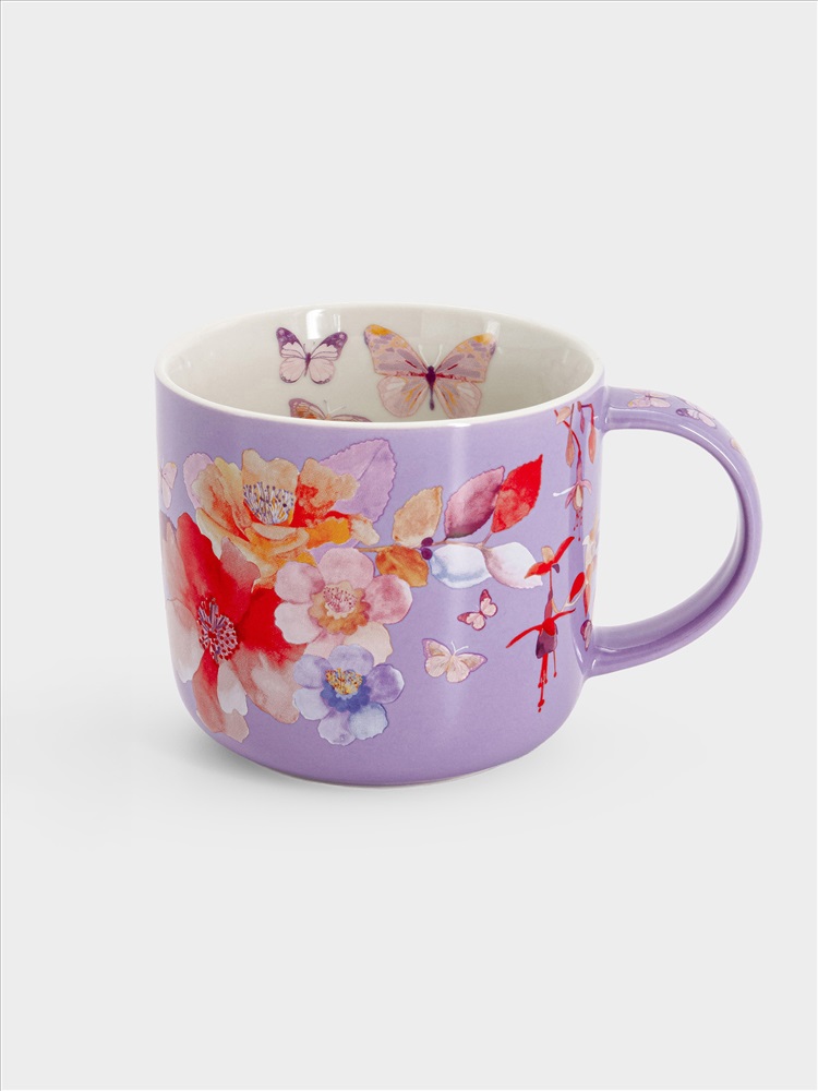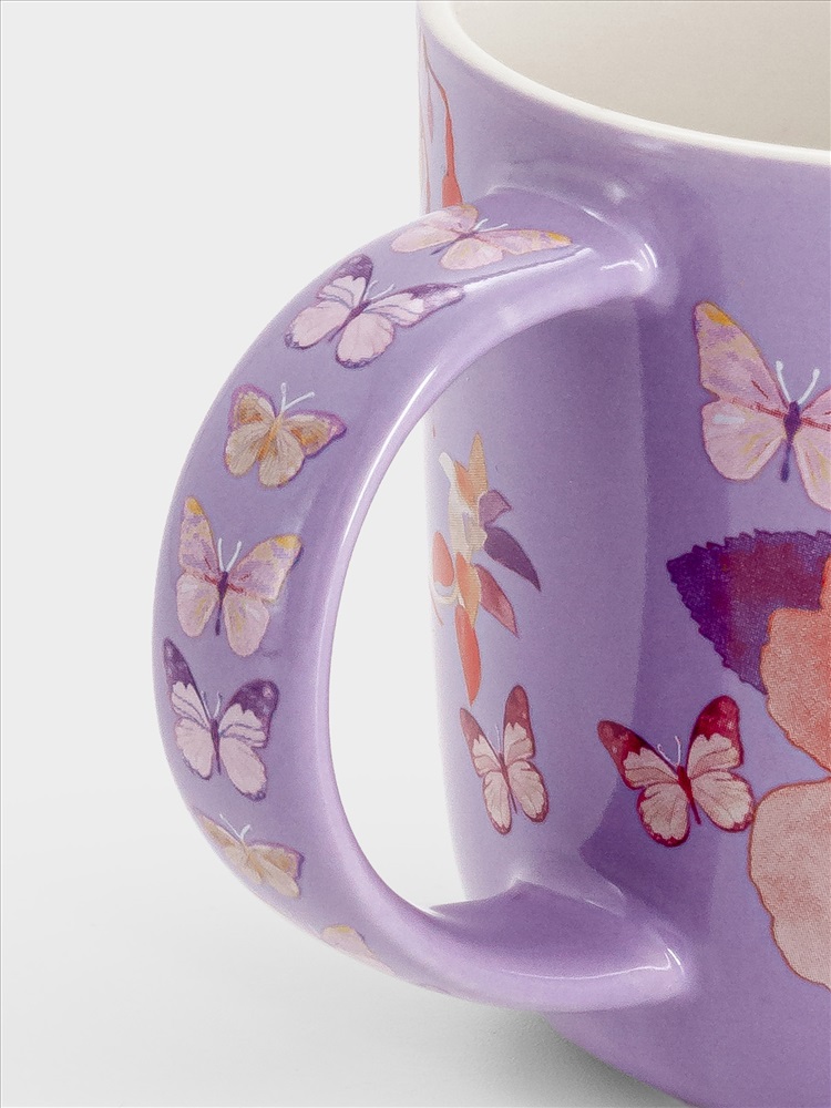 Кружка, 450 мл, фарфор P, лиловая, Цветы, Camilla. Материал: фарфор Рorcelain. Мыть тёплой водой с применением жидких моющих средств и в посудомоечной машине. Можно использовать в СВЧ.