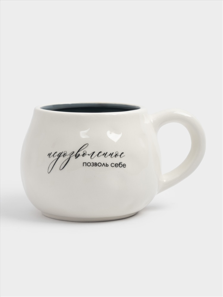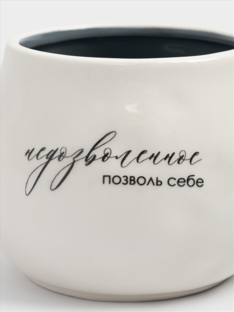 Кружка, 460 мл, керамика, бело-серая, мятый эффект, Позволь себе, Message