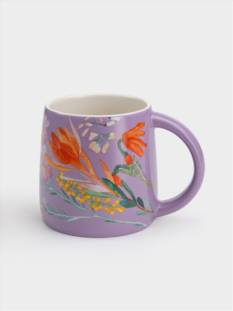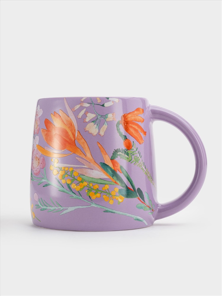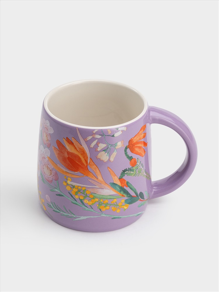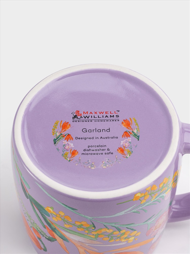 Кружка, 370 мл, фарфор P, сиреневая, Цветы, Garland. Материал: фарфор Рorcelain. Мыть тёплой водой с применением жидких моющих средств и в посудомоечной машине. Можно использовать в СВЧ.