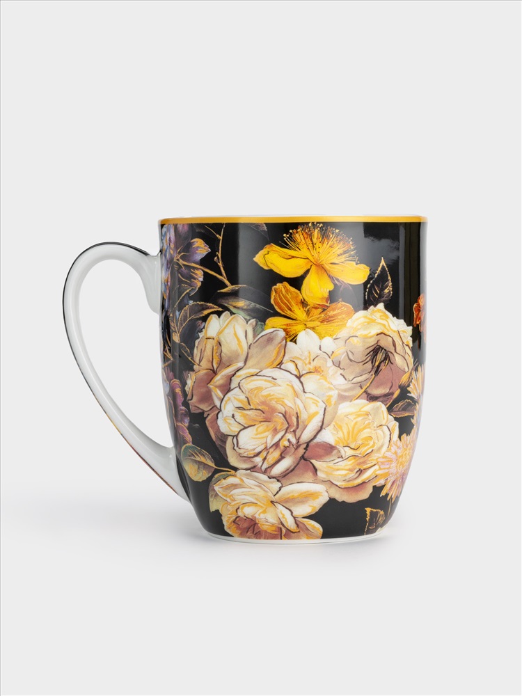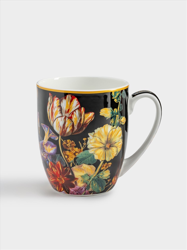 Бренд: CARMANI Кружка, 400 мл, фарфор F, черная, Тюльпан, Baroque flowers. Материал: фарфор Fine Bone China. Мыть мягкими моющими средствами. Можно использовать в СВЧ и мыть в посудомоечной машине.