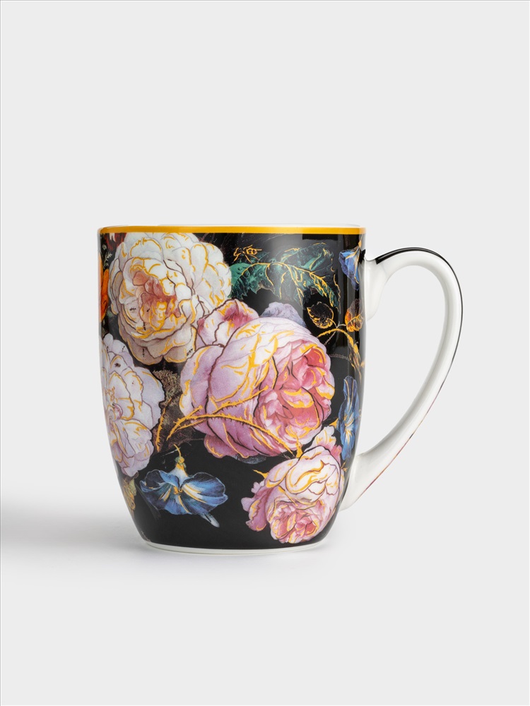 Бренд: CARMANI Кружка, 400 мл, фарфор F, черная, Розы, Baroque flowers. Материал: фарфор Fine Bone China. Мыть мягкими моющими средствами. Можно использовать в СВЧ и мыть в посудомоечной машине.