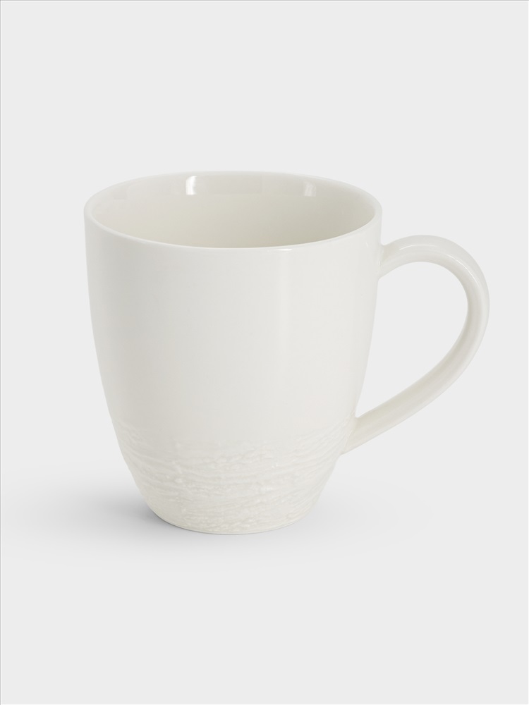Кружка, 340 мл, фарфор P, белая, Мятый эффект, Rock. Материал: фарфор Рorcelain. Мыть тёплой водой с применением жидких моющих средств и в посудомоечной машине. Можно использовать в СВЧ.