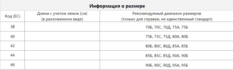 Размер: Красный 38: 70BCD75AB, Красный 44: 85BCD90AB, Красный 46: 90BCD95AB, Зеленый 44: 85BCD90AB, Зеленый 46: 90BCD95AB