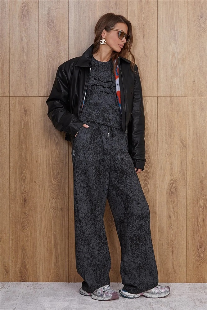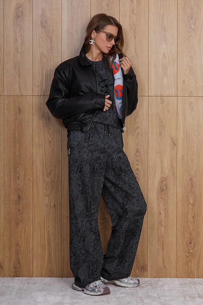 Объемная, укороченная куртка в стиле Casual, выполнена из мягкой экокожи, прямого силуэта, на вискозной авторской подкладке. Изделие на молнии. По переду прорезные карманы с широкими листочками, декорированы брендированными кнопками. Плечо чуть спущено. Спинка с фигурной кокеткой. Низ изделия на планке, в которую вставлена плотная резинка. Рукав втачной, двухшовный, длинный. Низ рукава на плотной манжете, в которую вставлена резинка. Воротник- стояче-отложной.