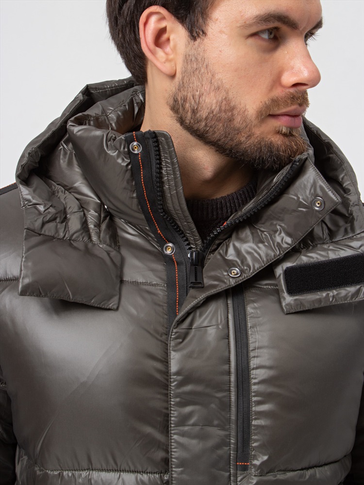 Ткань подкладки: Нейлон Утеплитель: Био-пух, 280 грамм/м2 Длина: 75 см Укороченный пуховик .выполнен из прочного нейлона с глянцевым блеском. Модель с воротником дополнена регулируемым капюшоном, который при желании можно отстегнуть. Молнии сбоку превращаются в разрезы для свободы движения .Стеганые ячейки равномерно заполнили качественным био-пухом. Пуховик декорирован текстильными лентами черного цвета с контрастной полосой, которые дополнительно усиливают кнопки и украшен яркой оранжевой подкладкой. Для большего комфорта мы добавили трикотажные манжеты, три теплых функциональных кармана по переду, карман на рукаве, большие внутренние карманы и внутреннюю и внешнюю ветрозащитные планки. Куртка выполнена в 2х цветах: хаки и черный с подкладкой оранж.Спортивная модель немного маломерит . Комментарии к товару