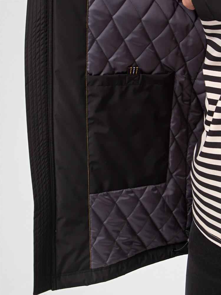 Ткань подкладки: Полиэстер Утеплитель: Синтепон,100 г/м2 Длина: 88см В весеннюю коллекцию Dellione вошла куртка прямого силуэта с цельнокроеным капюшоном и трикотажным воротником-стойкой. Лаконичную модель сшили из прочного эластичного полиэстера double (двухслойный). Изделие из такого материала защищает от дождя и ветра, не сковывает движения, легко очищается от загрязнений и почти не мнется, поэтому идеально подойдет для поездок. Подкладка стеганая с тонким слоем синтетического утеплителя поддерживает оптимальную температуру и не создает лишний объем, мешающий свободно двигаться. Два функциональных внутренних кармана с контрастной отделкой и три внешних. На модели надет 52 размер ,рост модели 188 см. Комментарии к товару