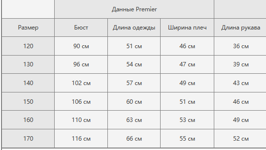 Размер: 120, 130, 140, 150, 160, 170