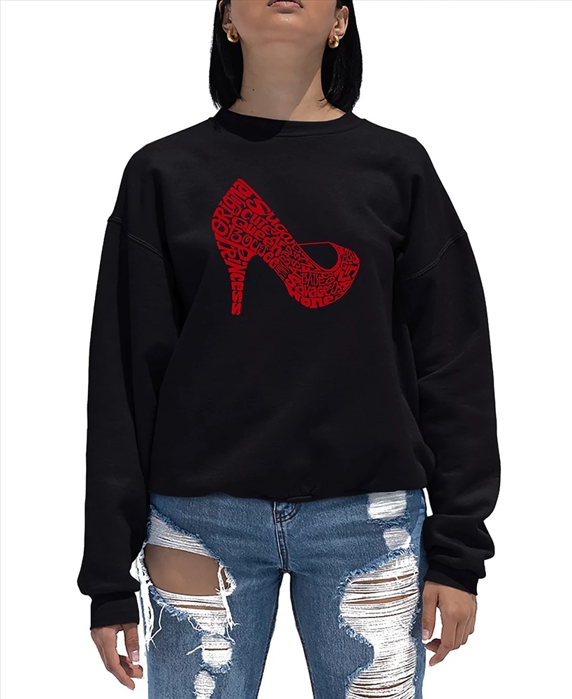 LA Pop Art Women's Word Art Crewneck High Heel Sweatshirt