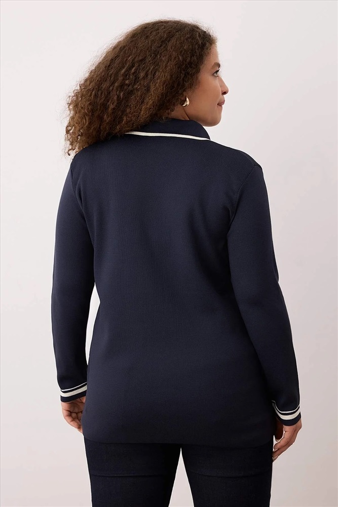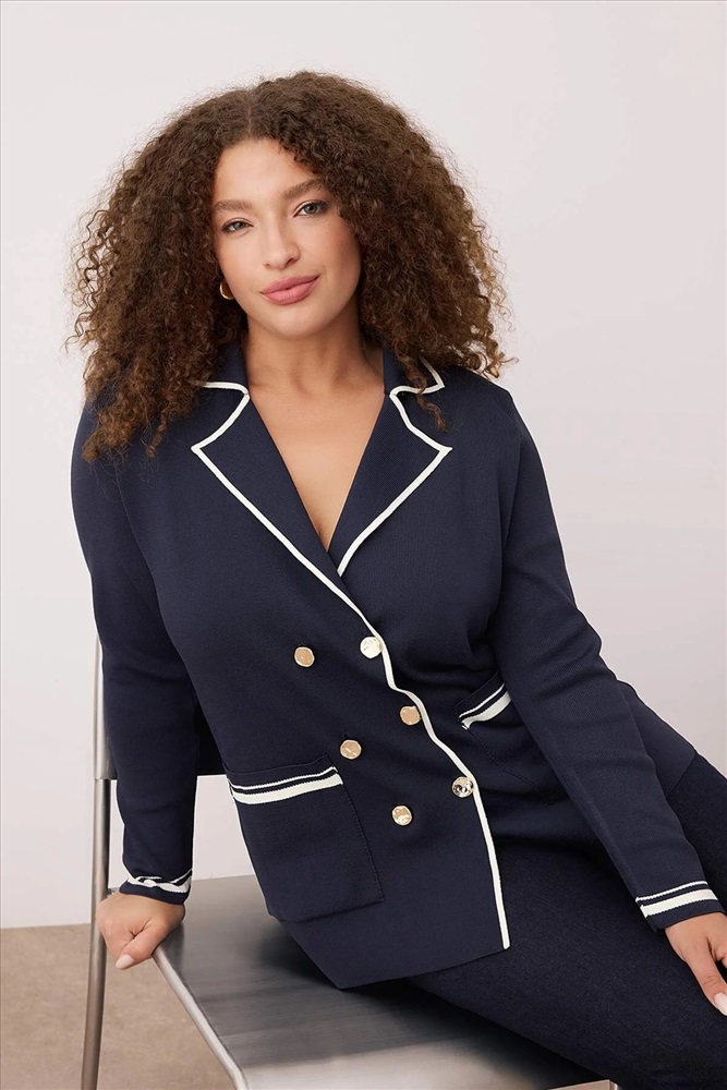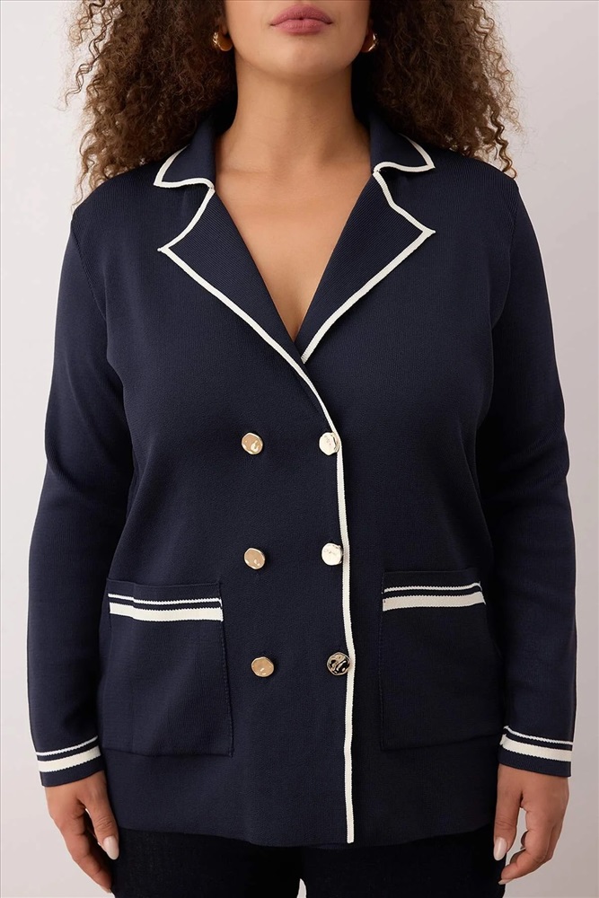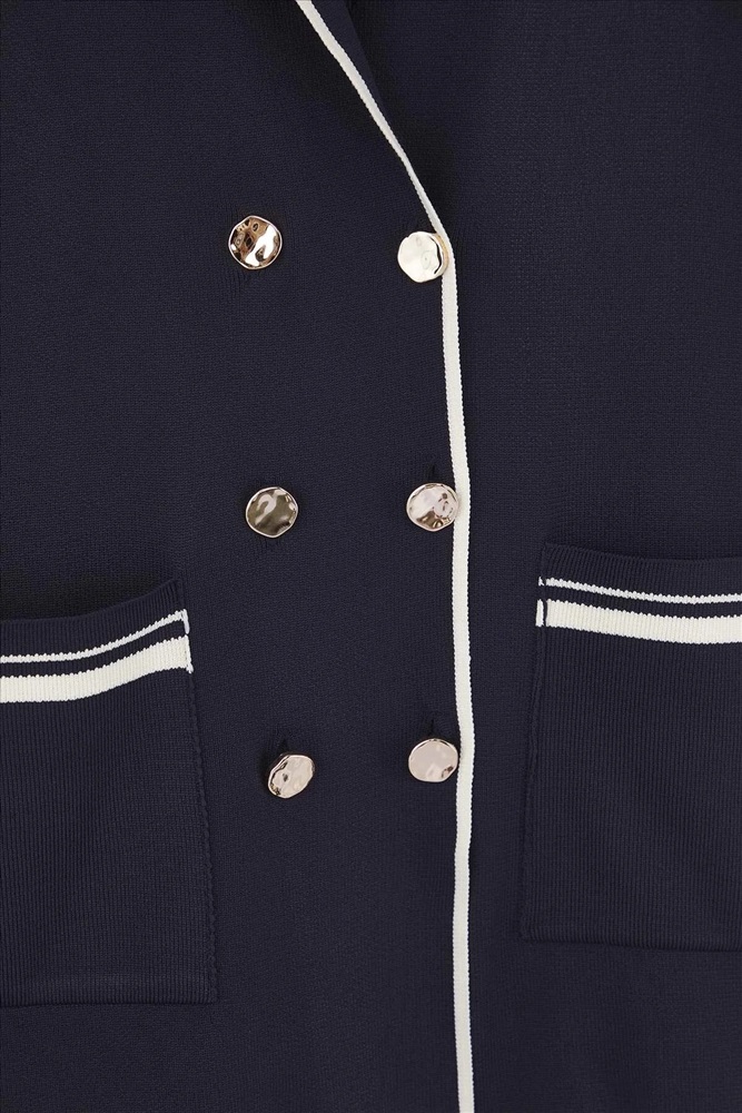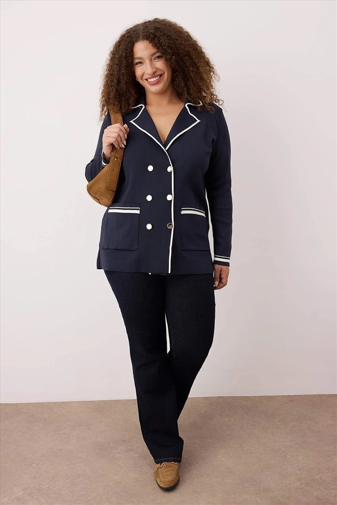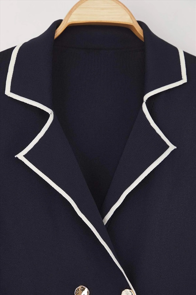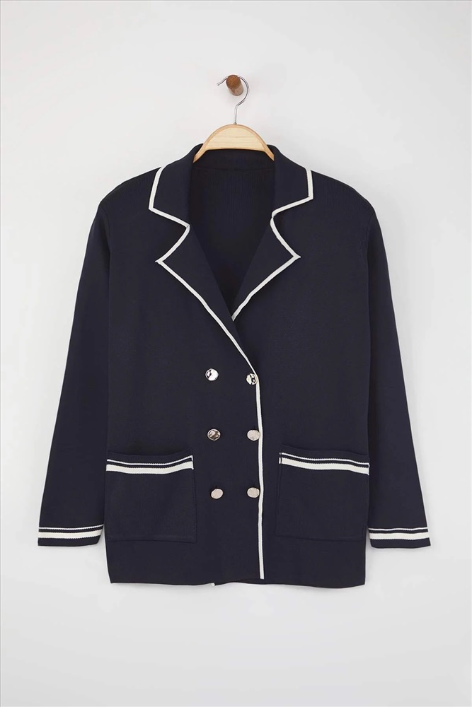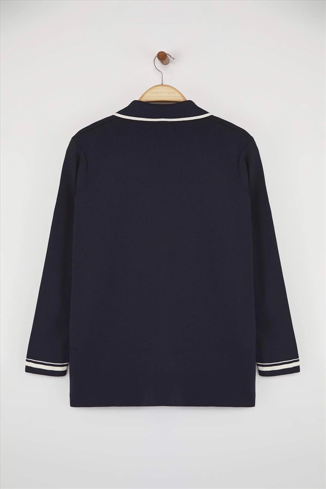 Lacivert Ceket Yaka Çizgi Detaylı Triko Ceket Görünümlü Hırka TBBAW26AV00002