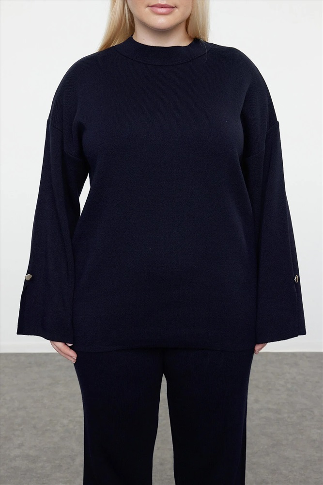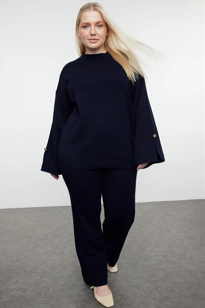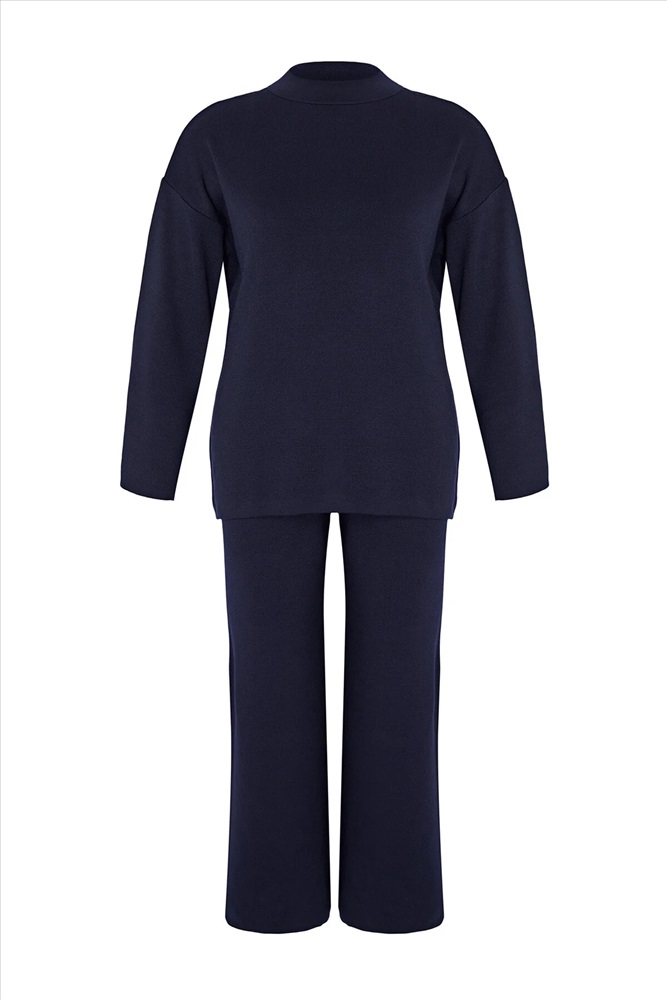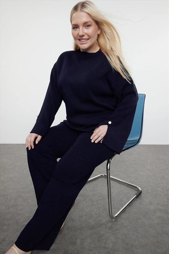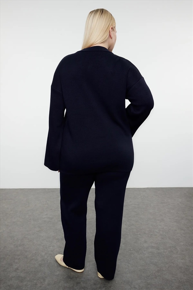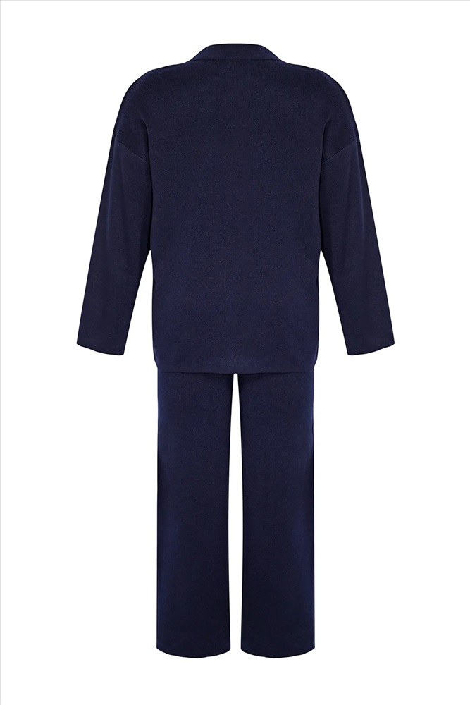 Lacivert Dik Yaka Düğme Detaylı Alt-Üst Takım TBBAW24CP00015