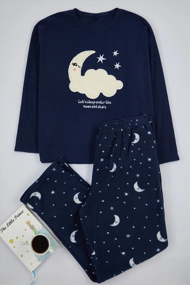 Lacivert Galaksi Desenli Polar Örme Pijama Takımı TBBAW25AI00019