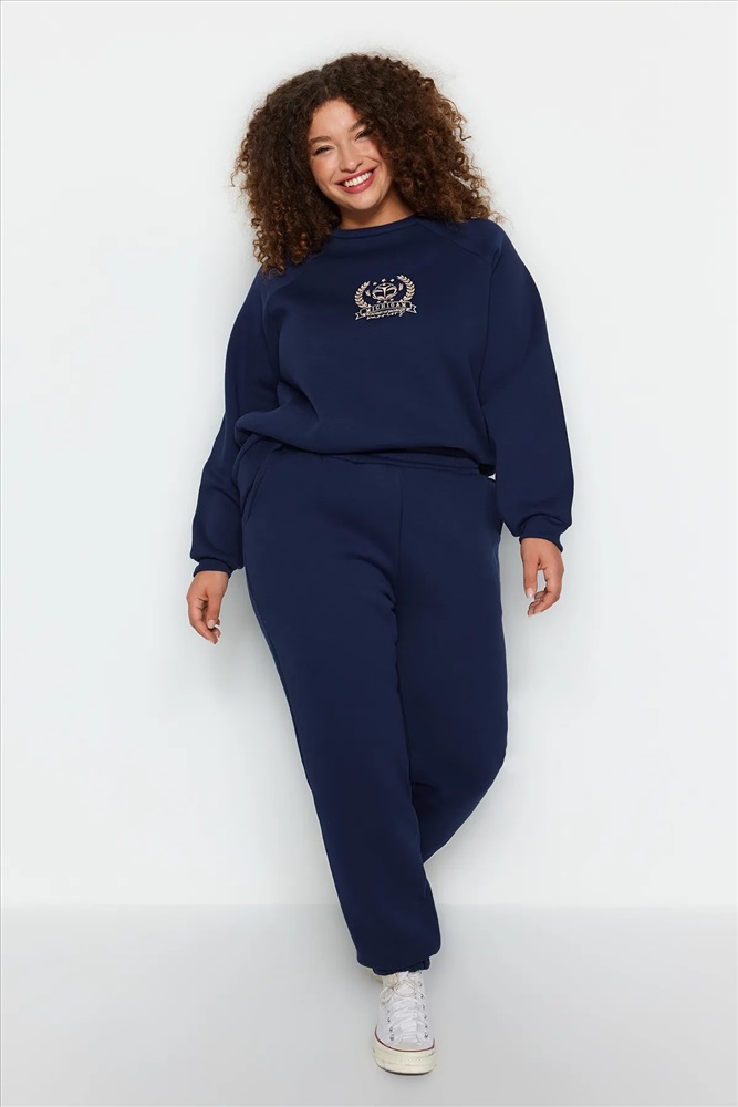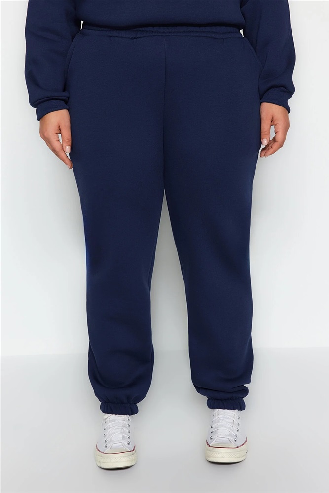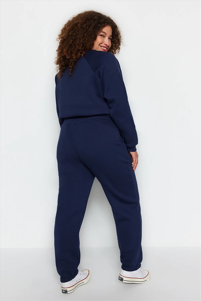 Lacivert Jogger Kalın İçi Polarlı Örme Büyük Beden Eşofman Altı TBBAW24AJ00002