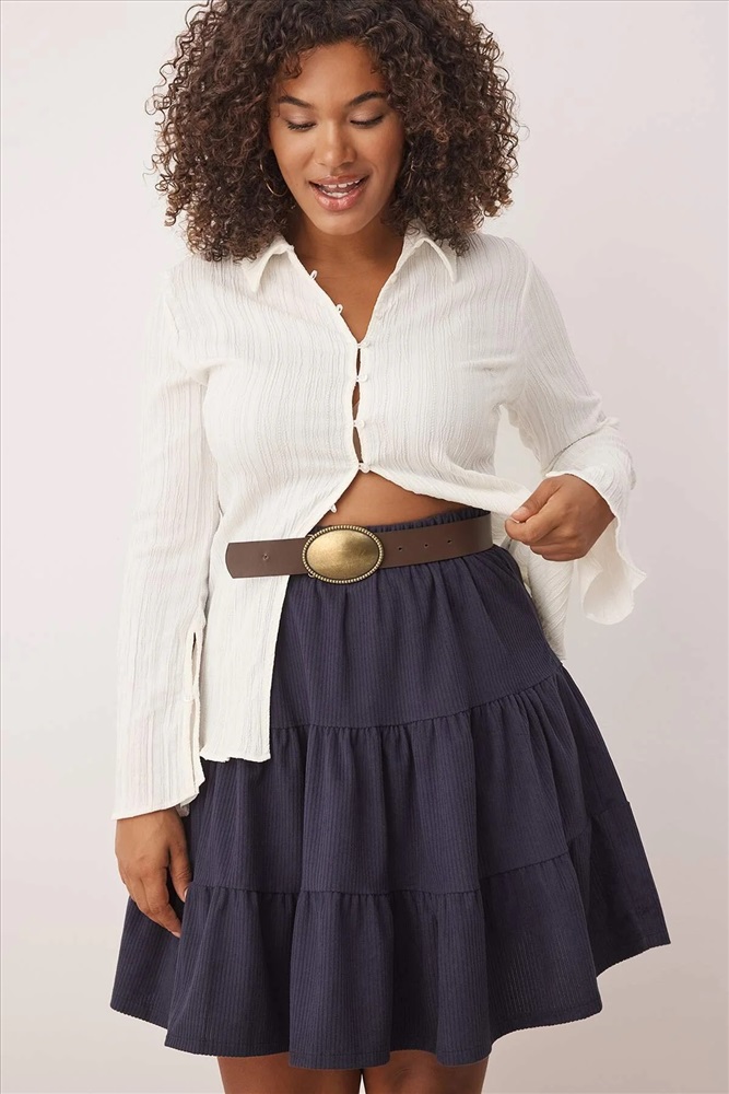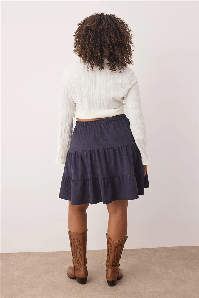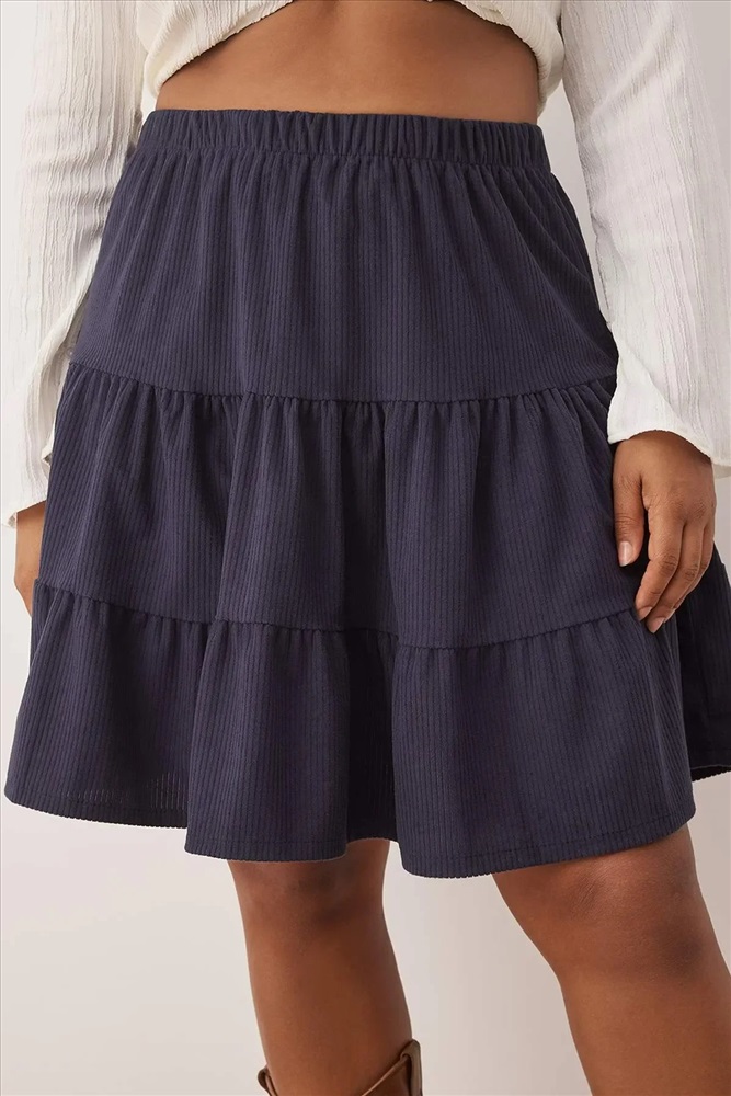Lacivert Kışlık Fitilli Kadife Kısa Dokuma Büyük Beden Etek TBBAW26AZ00010