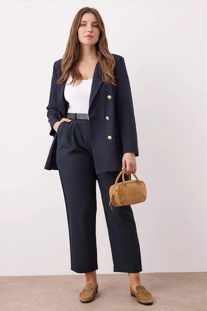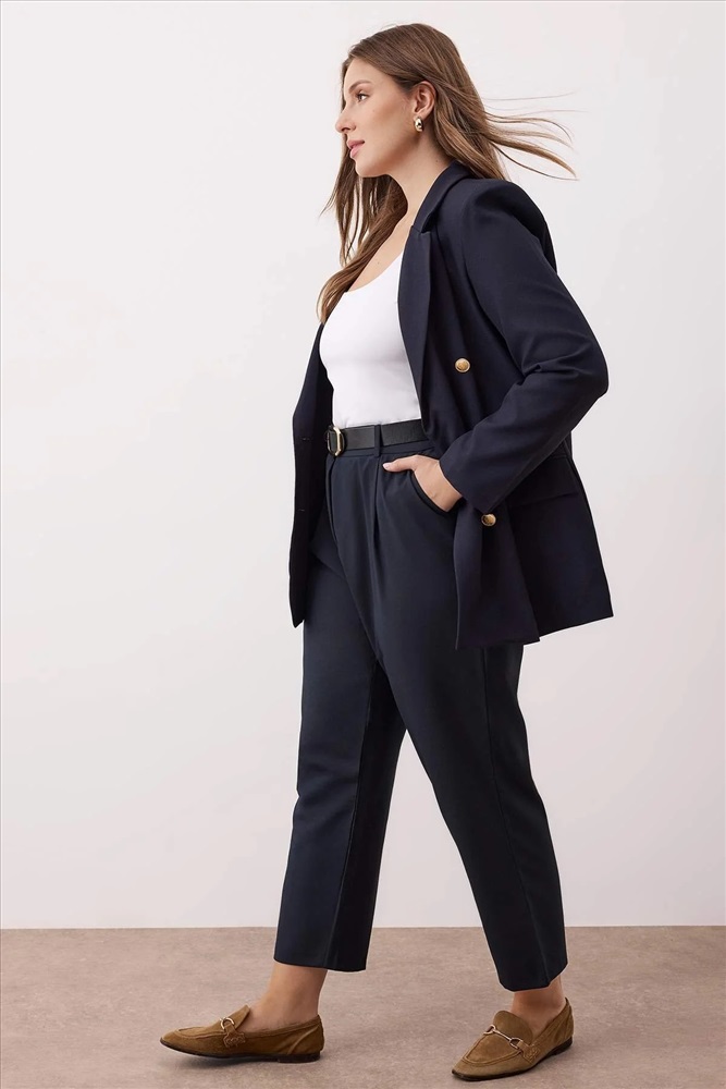 Lacivert Lastik Belli Dokuma Premium Kumaş Büyük Beden Pantolon TBBAW26AR00012