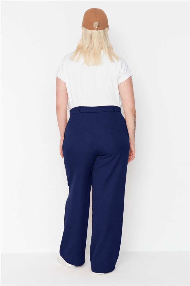 Lacivert Wide Leg/Geniş Paça Dokuma Büyük Beden Kumaş Pantolon TBBAW23AR00007