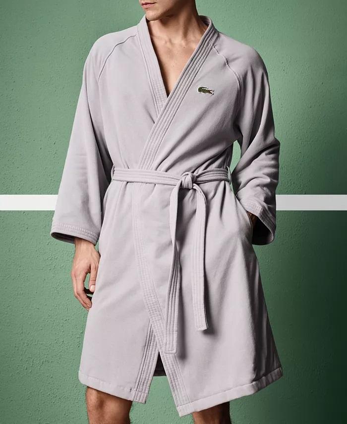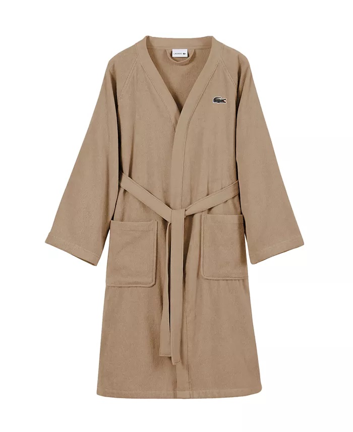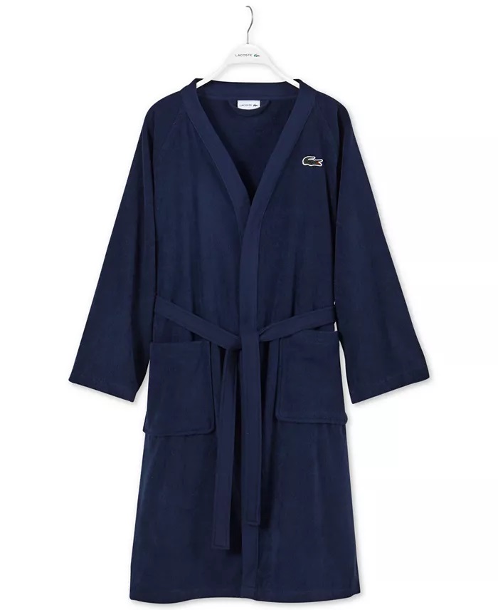 Lacoste Home Logo Patch 100% Cotton Pique Bath Robe