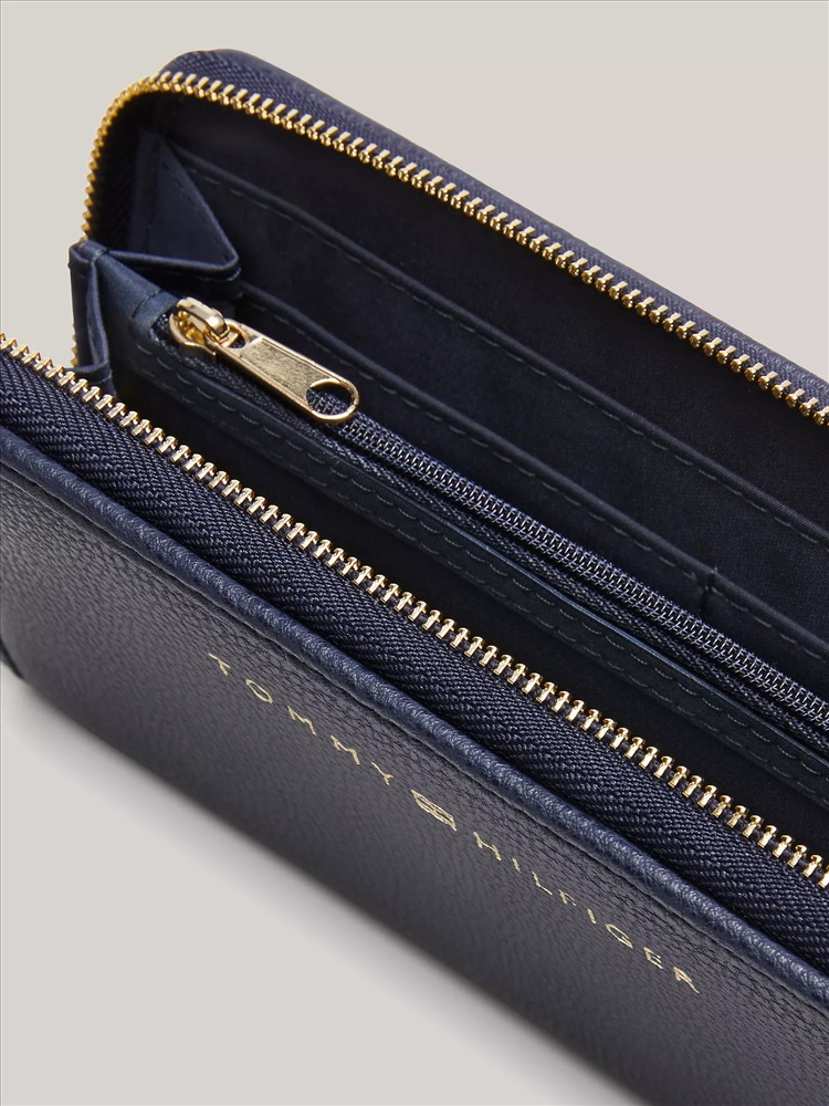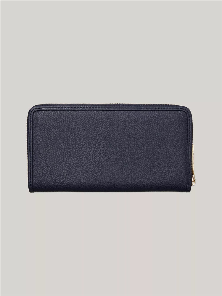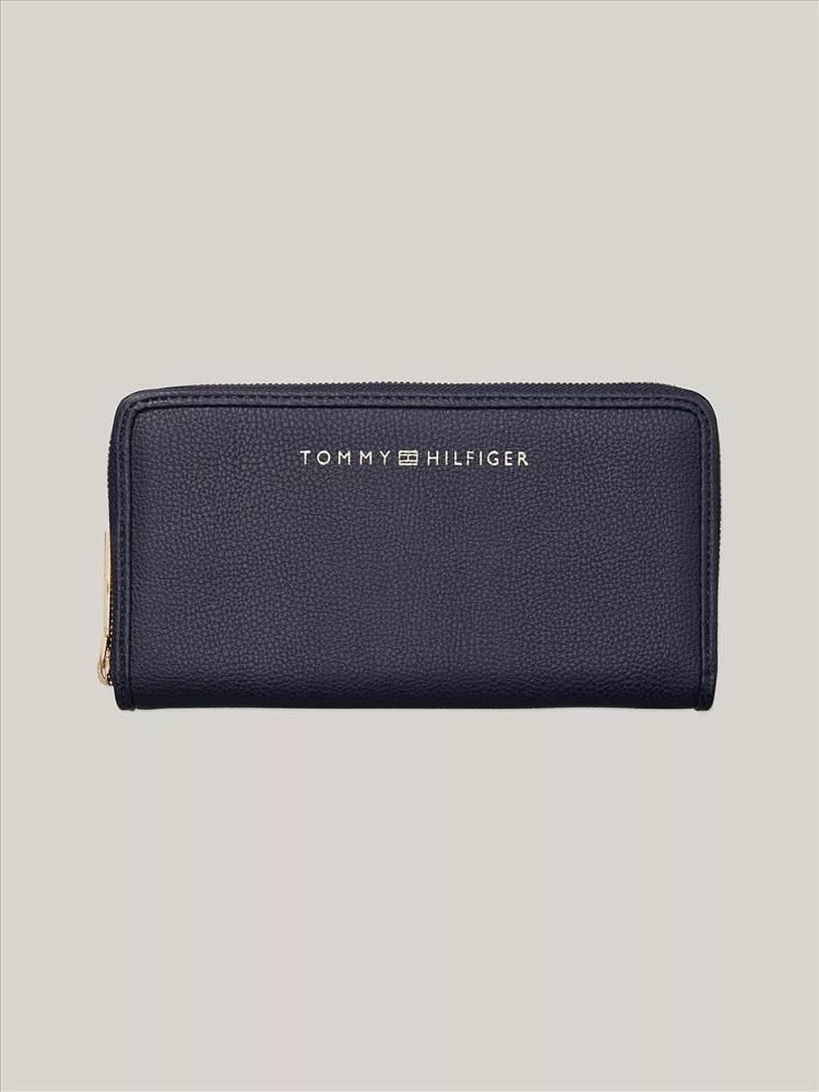 Tommy Hilfiger women's wallet. Keep a sleek profile with our zip-around wallet in a clean, classic silhouette. Inside, ample room for your cards and currency.