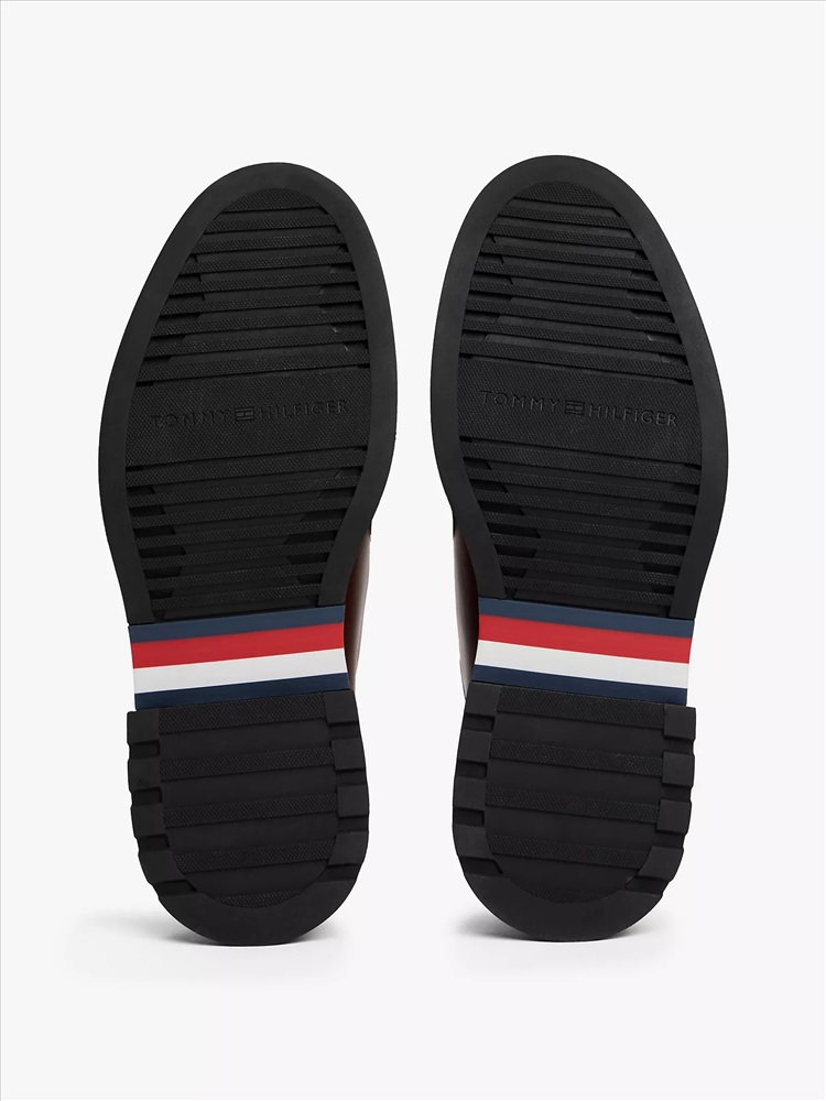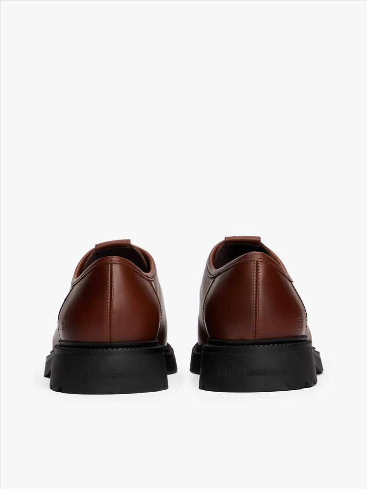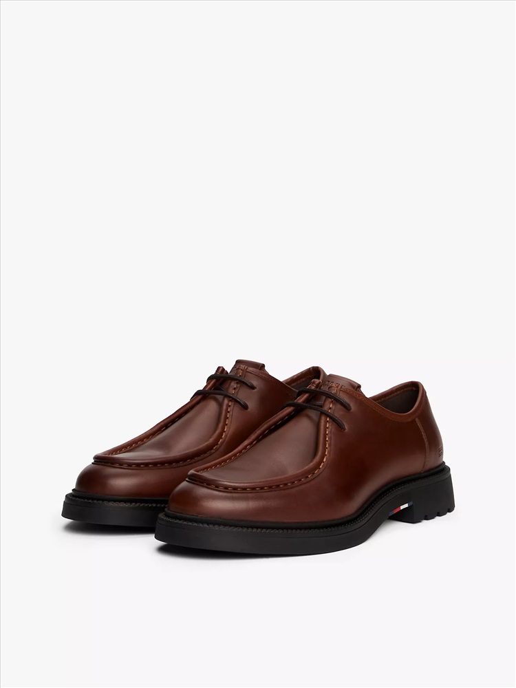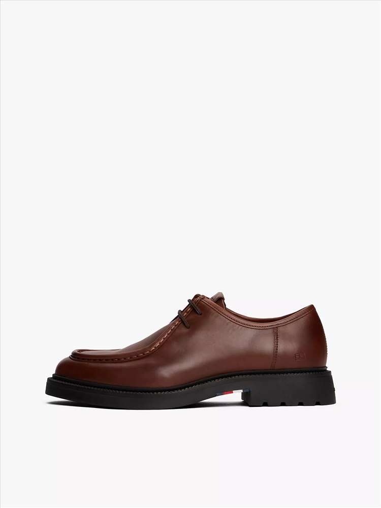 Tommy Hilfiger men's shoe. Made from premium leather, these derby shoes are designed with a moccasin-inspired toe and finished with an extra-padded heel for comfort.