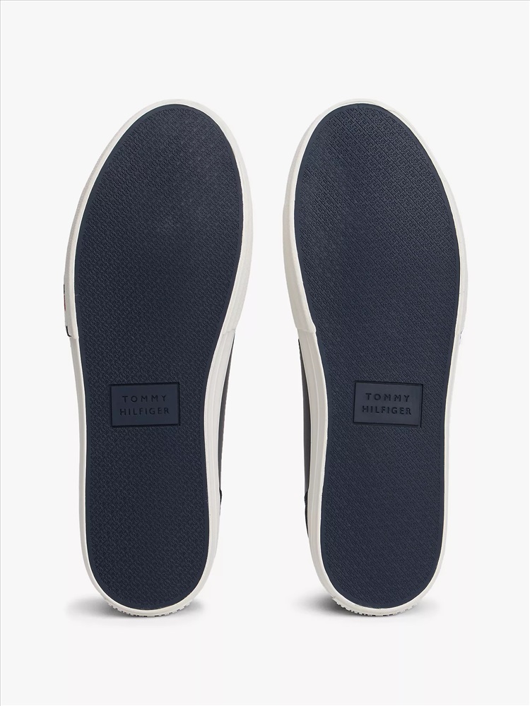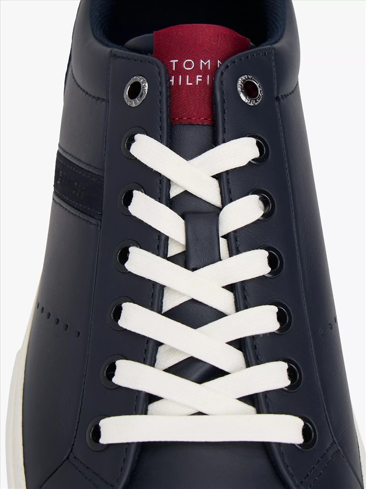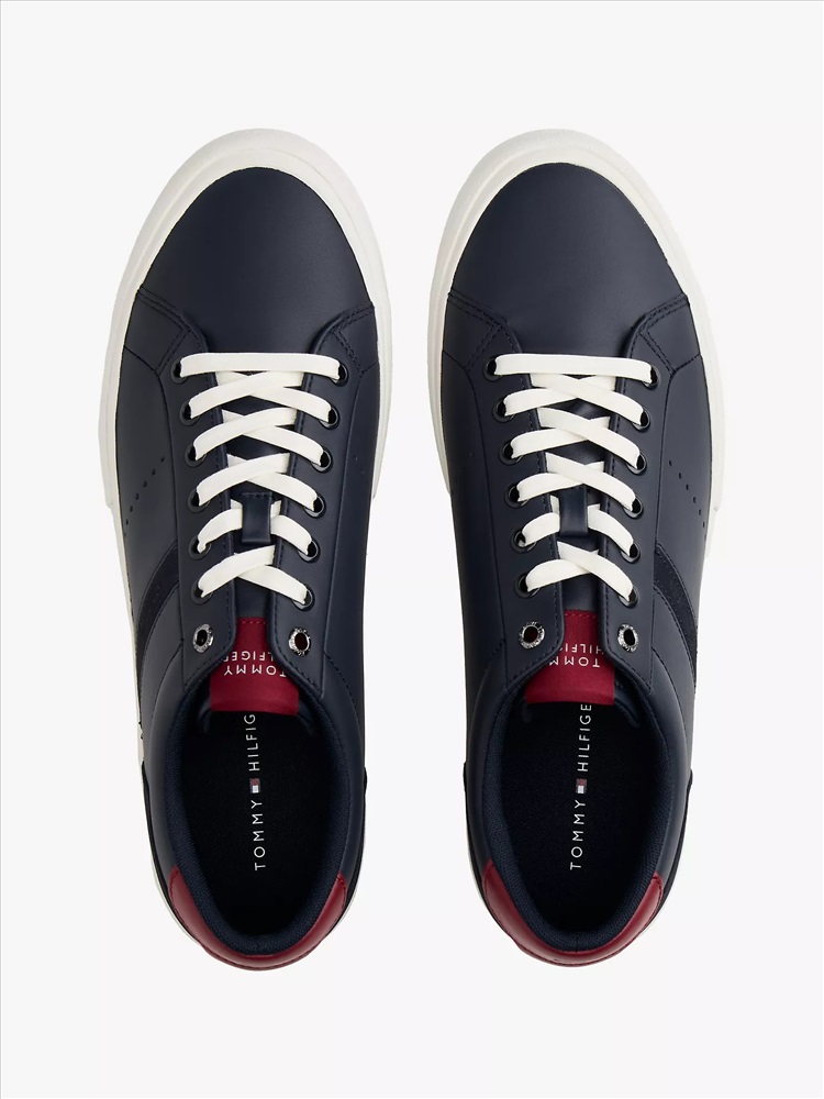 Tommy Hilfiger men's sneaker. For the minimalist, these classic leather low-top sneakers are designed with a lace-up vamp and subtle branding. We finished this pair with a heat-treated, vulcanized sole for added flex and durability.