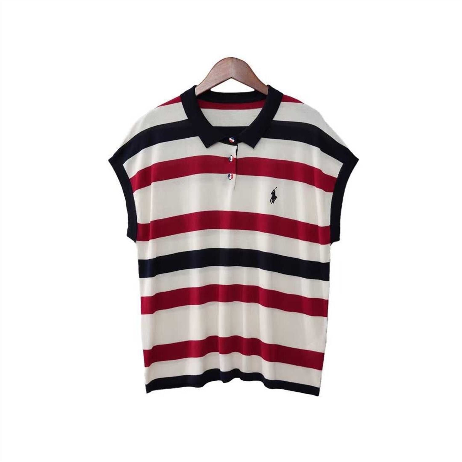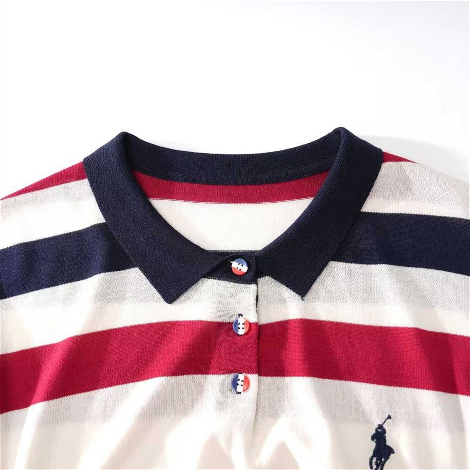 Лёгкая женская трикотажная футболка поло из тенселя в полоску
