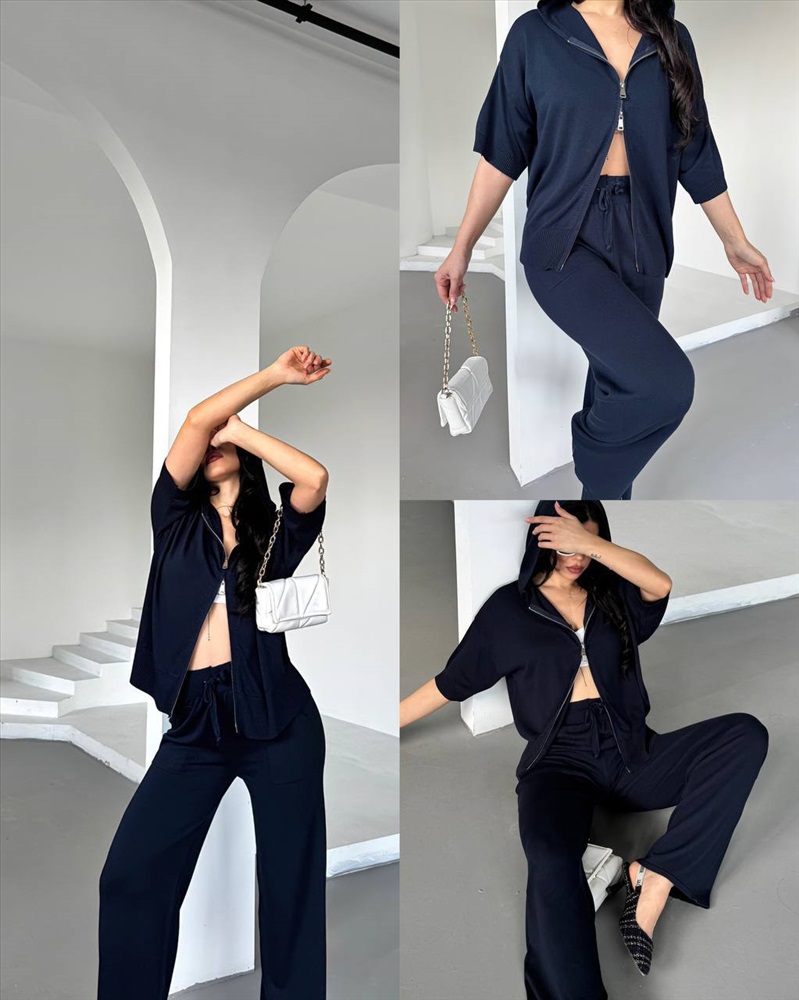 Легкий и мягкий трикотажный комплект с двойной молнией из вискозной ткани