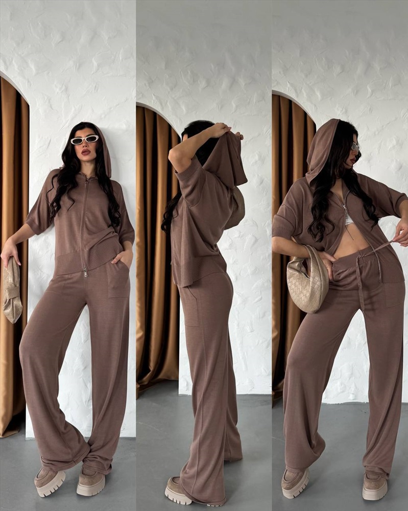 Легкий и мягкий трикотажный комплект с двойной молнией из вискозной ткани