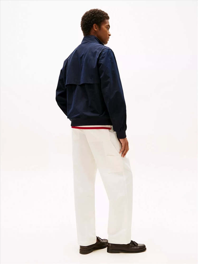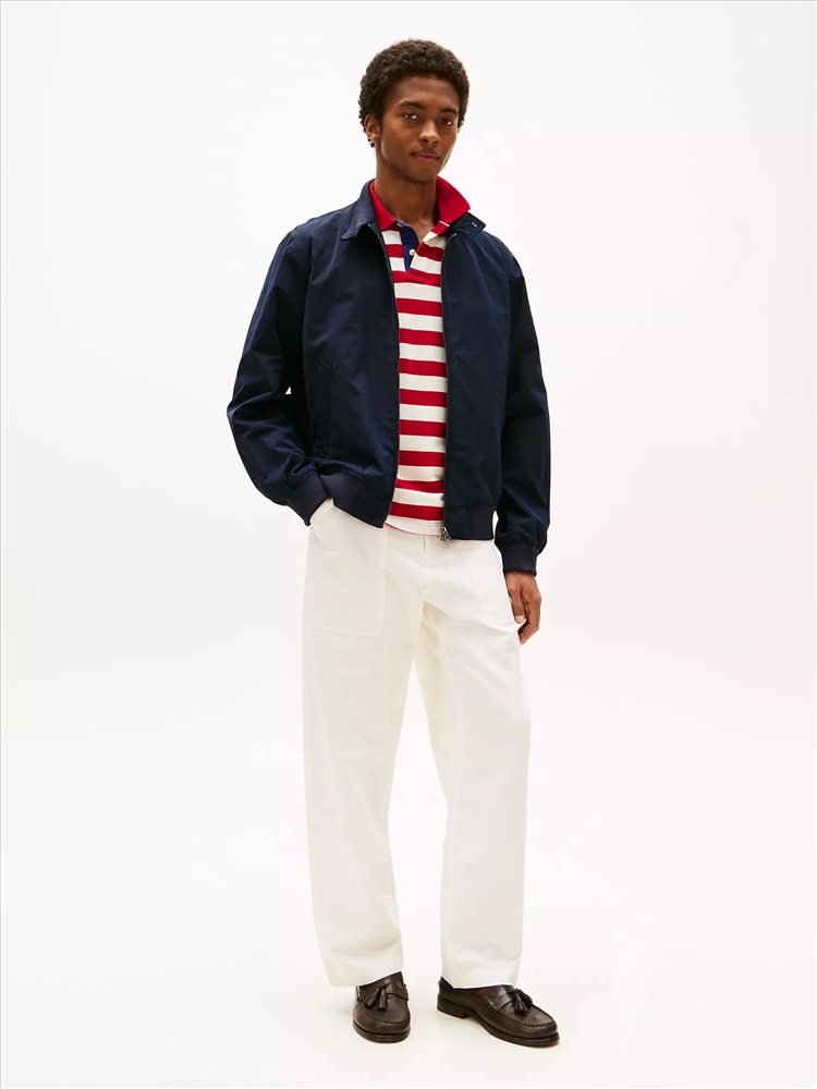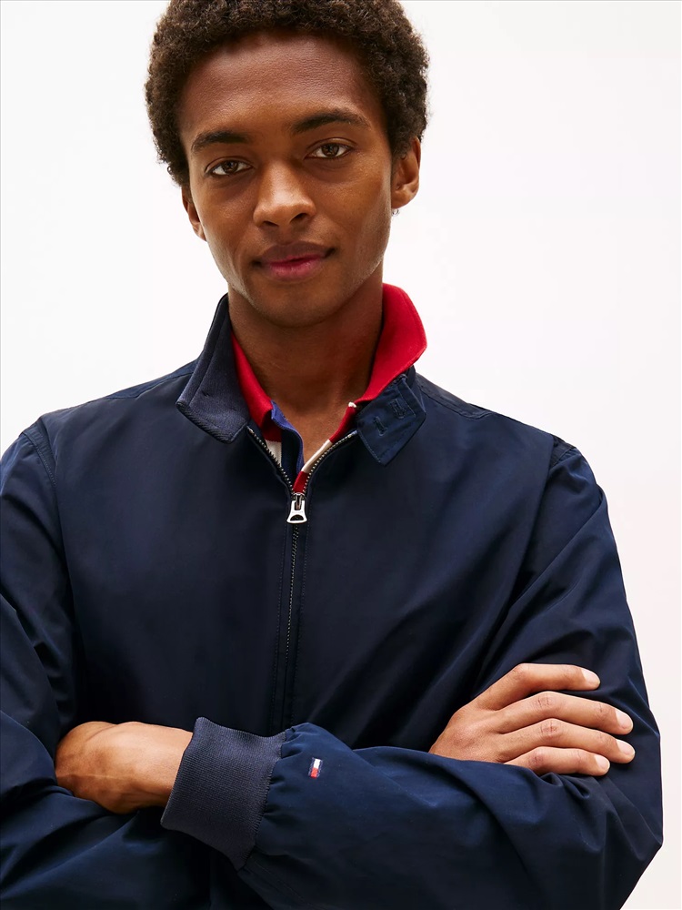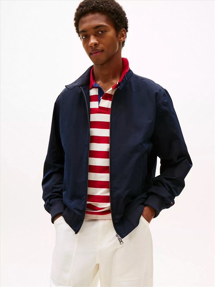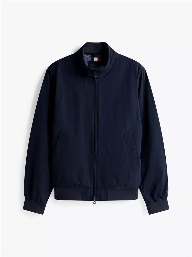 Tommy Hilfiger men's jacket. Our latest jacket features all the hallmarks of the classic Harrington, with its stand-up button collar and slanted front pockets. Ideal for travel or just your everyday commute, this lightweight layer is super versatile.