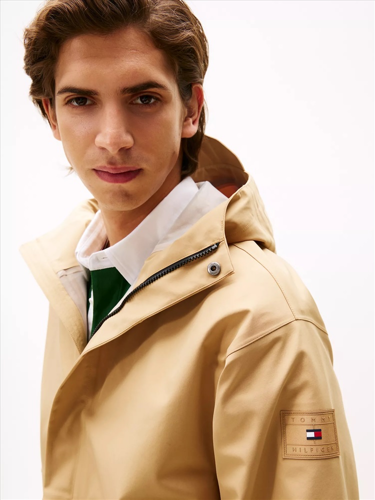 Tommy Hilfiger men's jacket. Every commuter's dream — a lightweight hooded jacket that you can just throw on and go, whatever the weather. This one is constructed with a zip and snap closure, touch-fastener cuffs and a specialized drawcord hood that adjusts at the front and back.