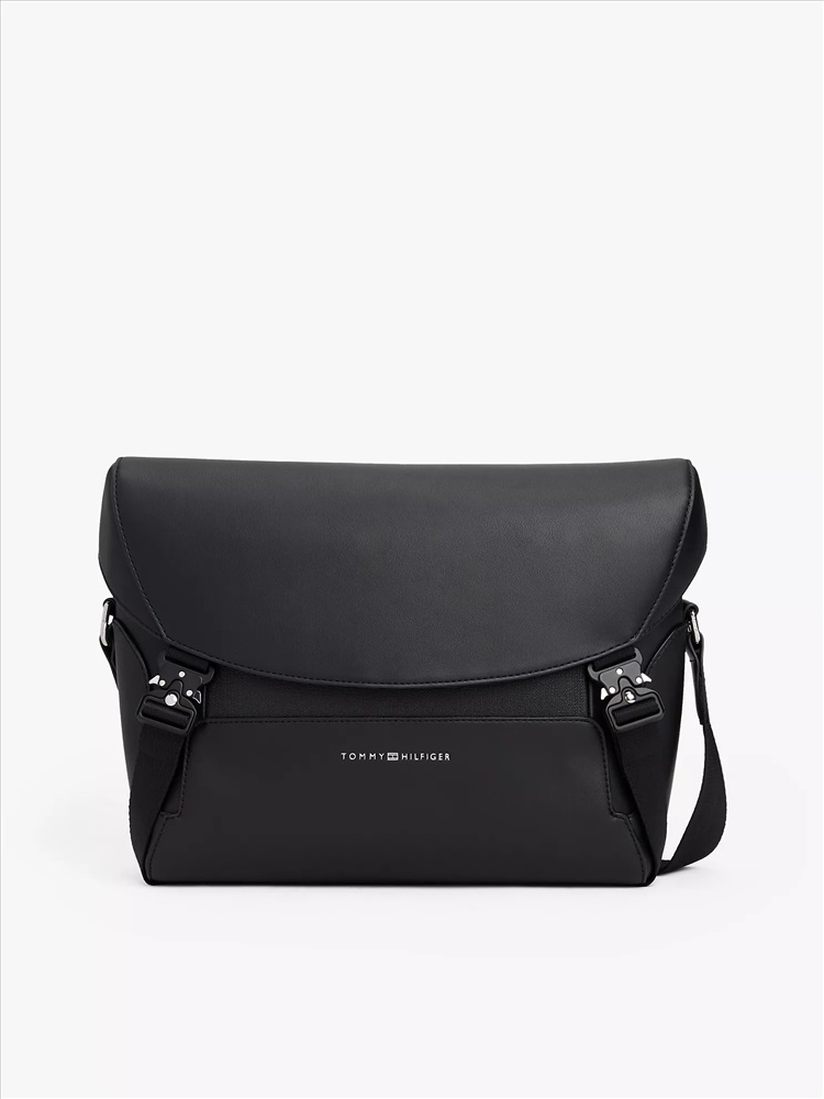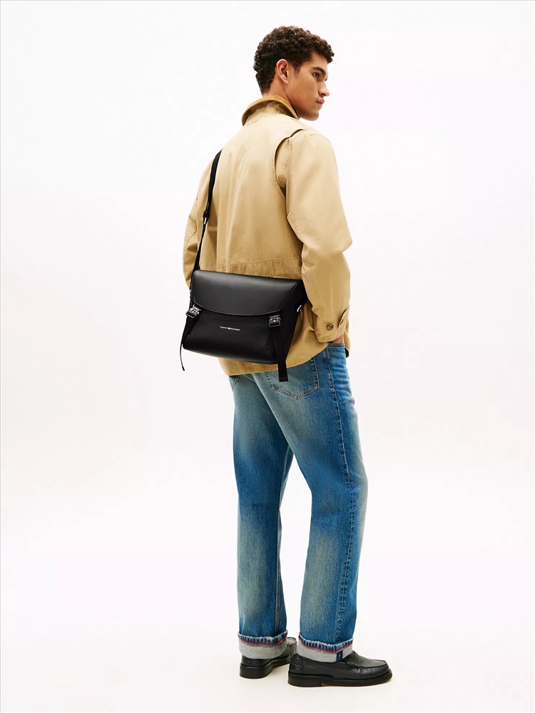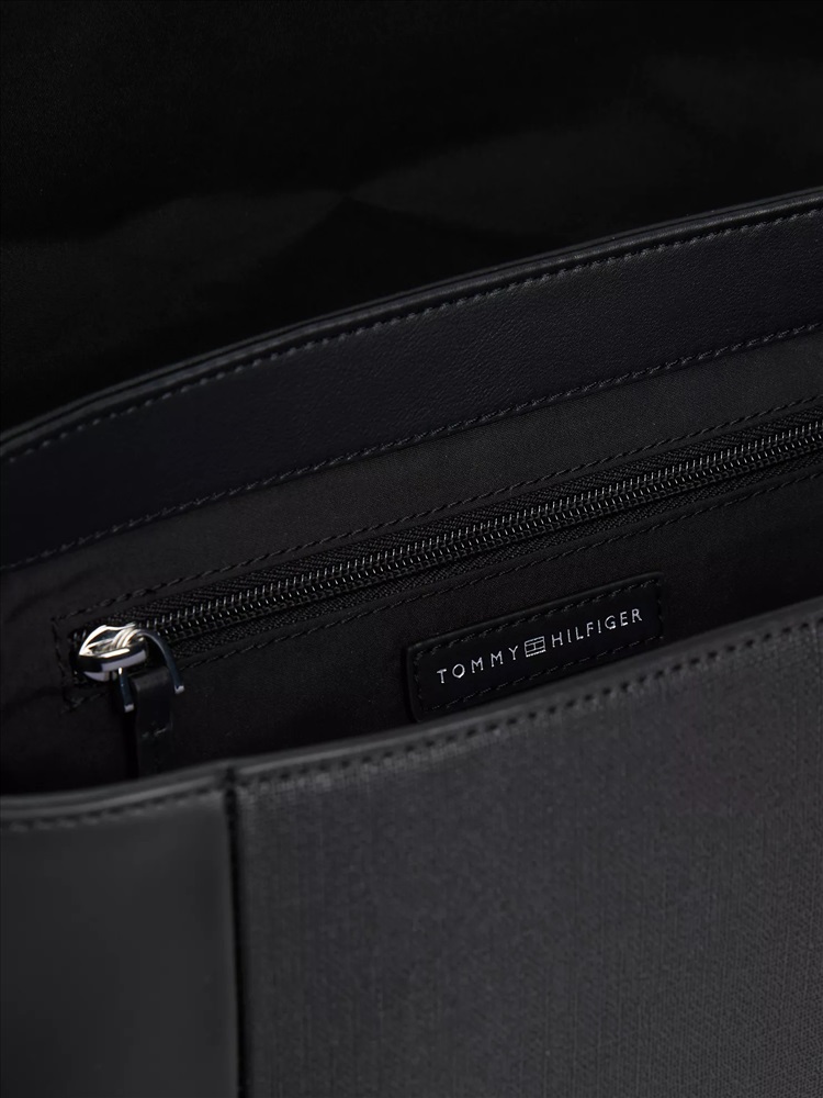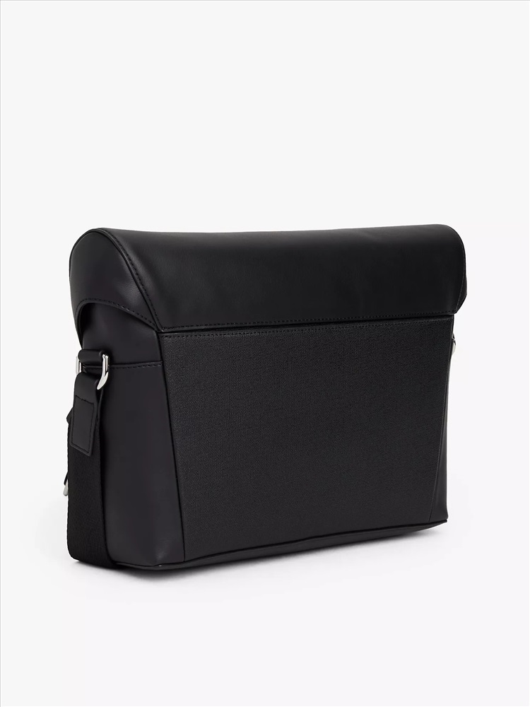 Tommy Hilfiger men's bag. This lightweight messenger bag delivers a modern, structured design with a smooth finish and textured contrast panels. It features a roomy main compartment and internal zip pocket to keep your essentials within reach.