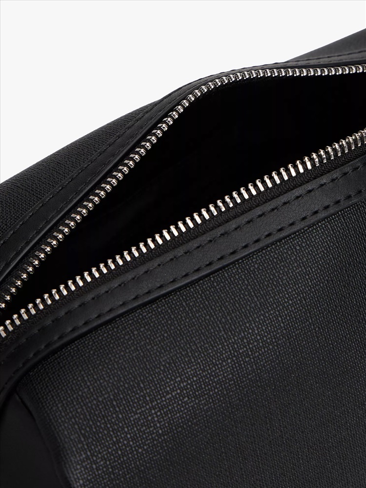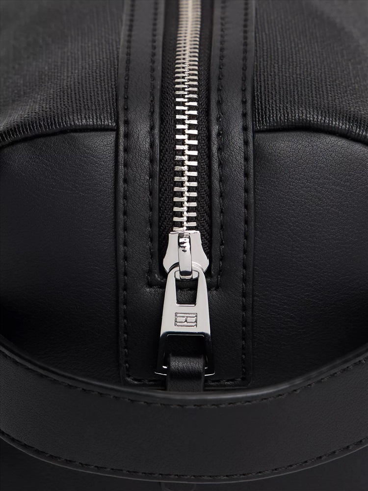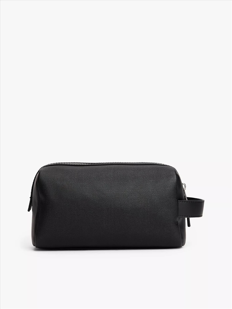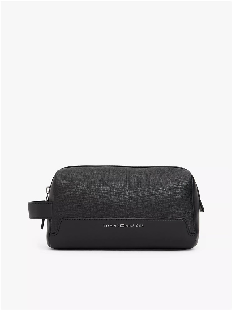 Tommy Hilfiger men's bag. This streamlined washbag delivers a modern design with a textured finish and smooth contrast panels. It's lightweight, easy to clean and sized to keep all your toiletries within reach.