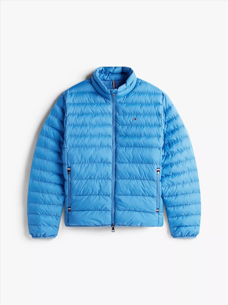 Tommy Hilfiger men's jacket. Ideal for travel, this puffer jacket folds down to a fraction of its size and easily stores in the internal security zip pocket. Made from lightweight fabric and toasty insulation, it's ready for whatever the weather report is dishing out.