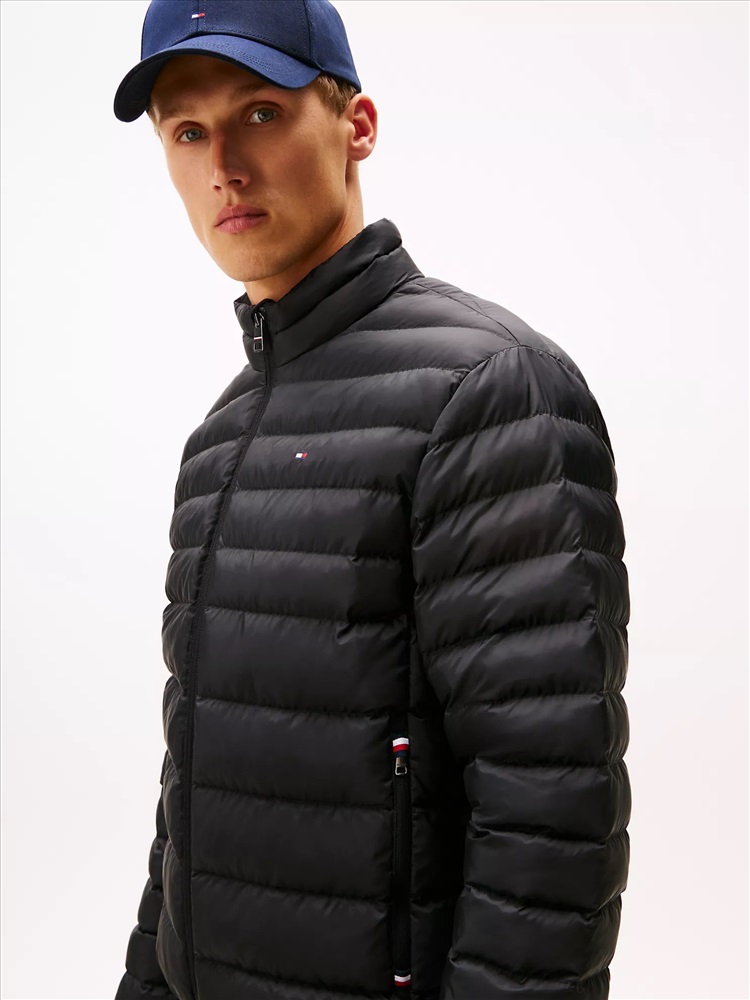 Tommy Hilfiger men's jacket. Ideal for travel, this puffer jacket folds down to a fraction of its size and easily stores in the internal security zip pocket. Made from lightweight fabric and toasty insulation, it's ready for whatever the weather report is dishing out.