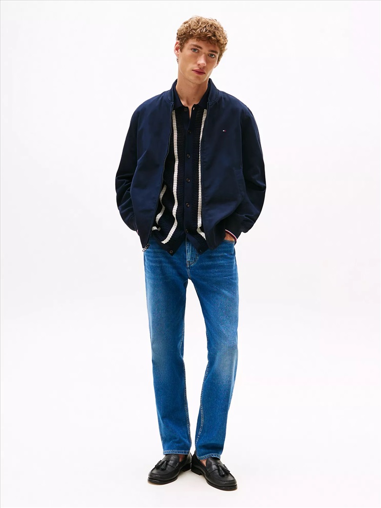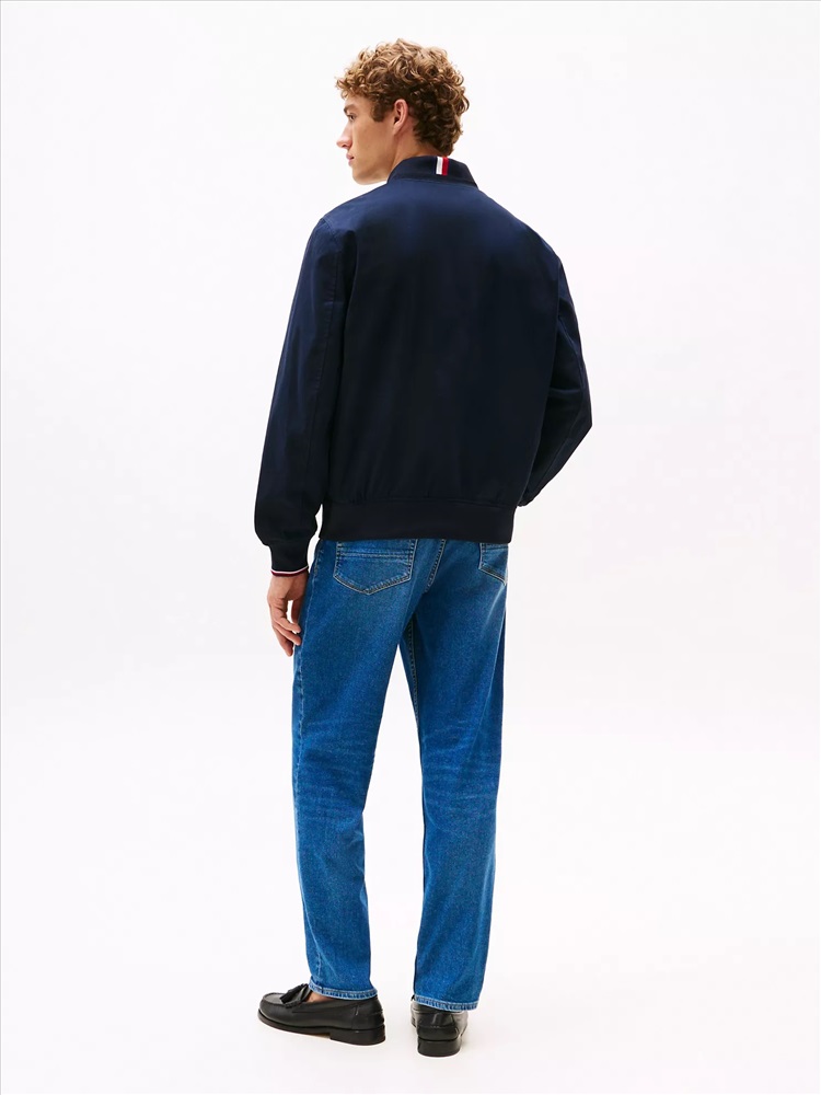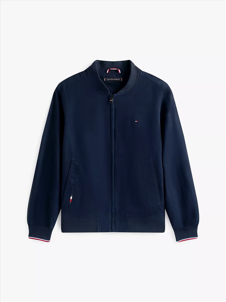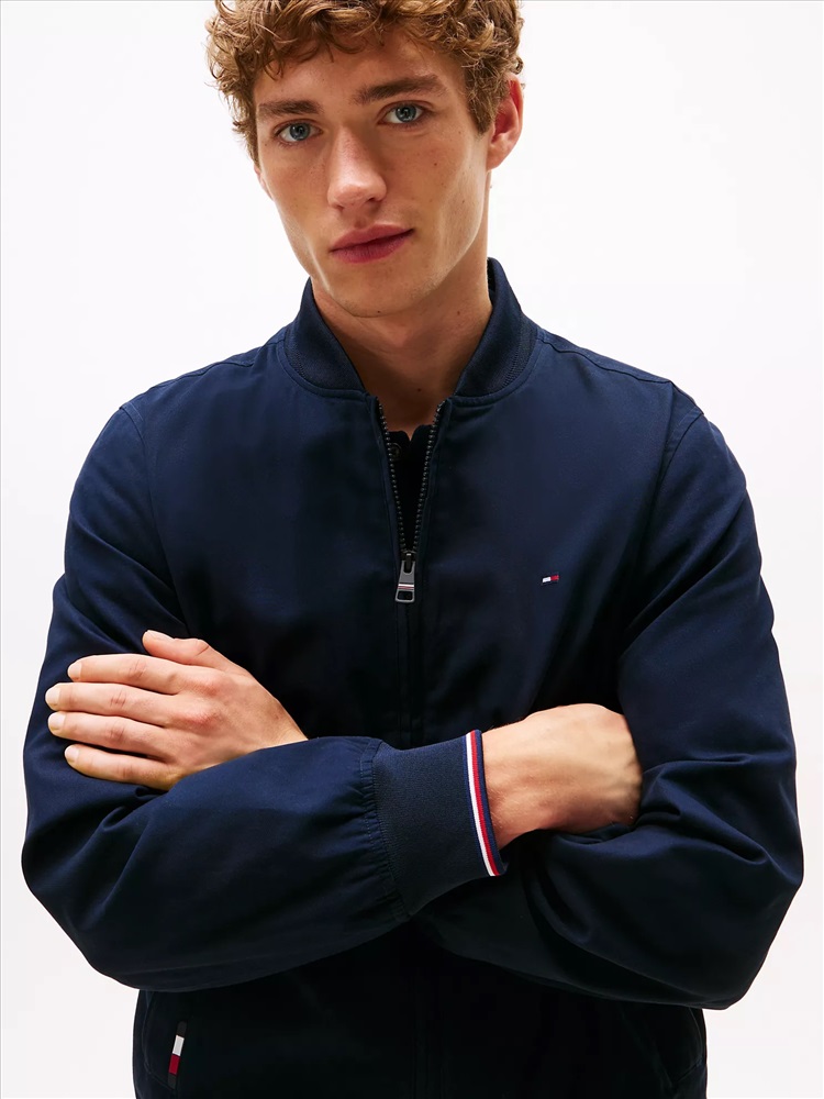 Tommy Hilfiger men's jacket. Effortlessly cool and ready for anything, our lightweight bomber brings a fresh twist to a classic silhouette. Made from cotton twill for breathable comfort and durability, it’s the ideal layer for stepping up your everyday style.