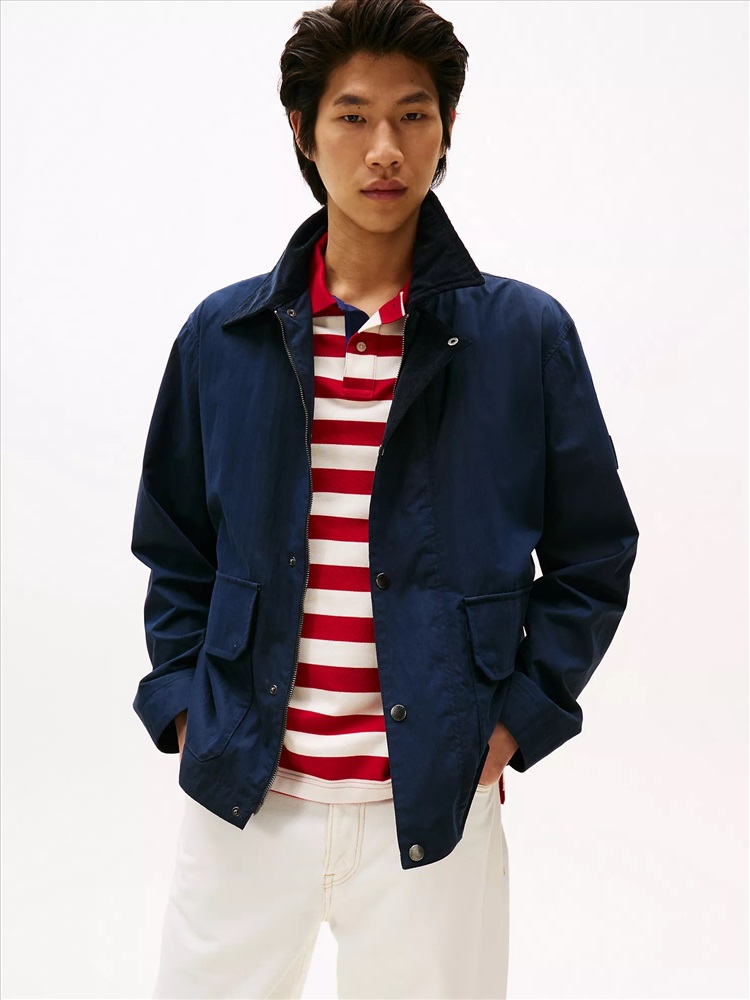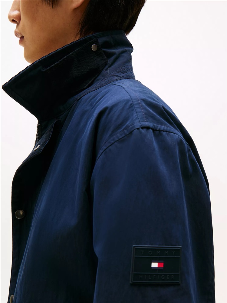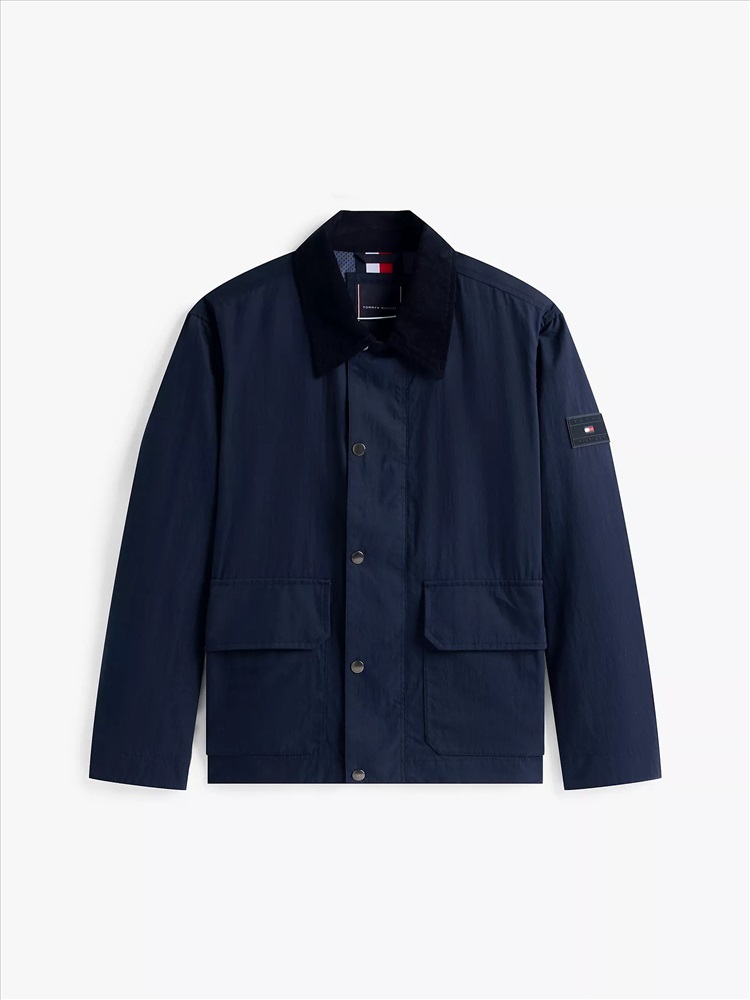 Tommy Hilfiger men's jacket. This lightweight utility jacket is the ideal outer layer for transitional weather days. This versatile style is designed with a soft corduroy collar and deep pockets for your essentials.