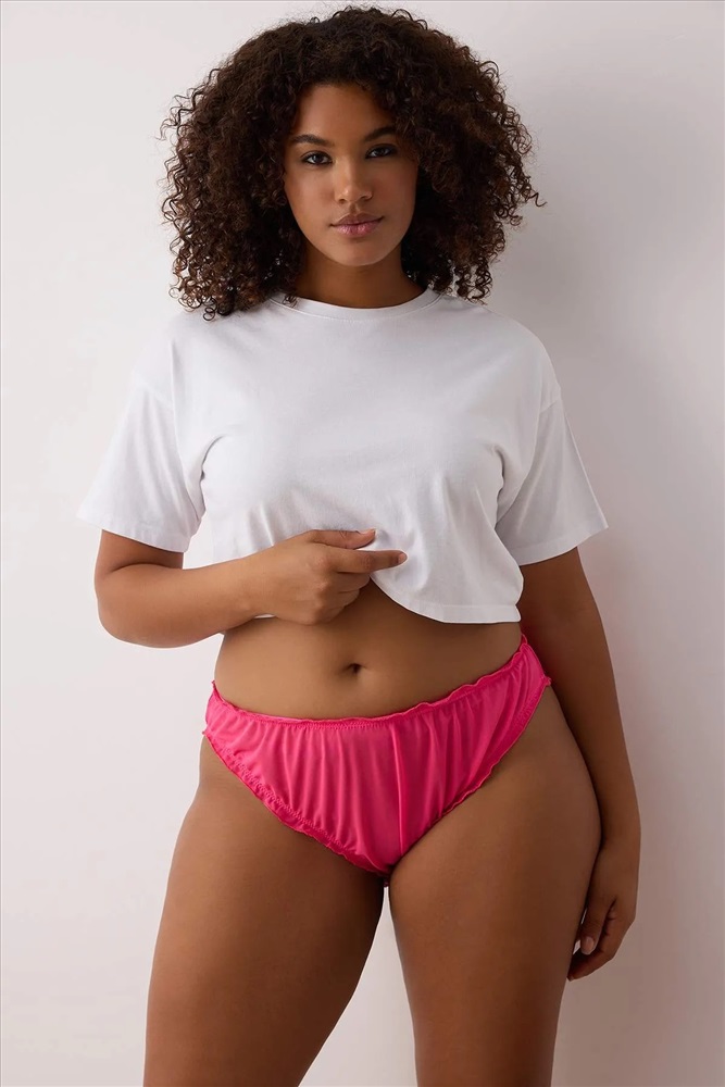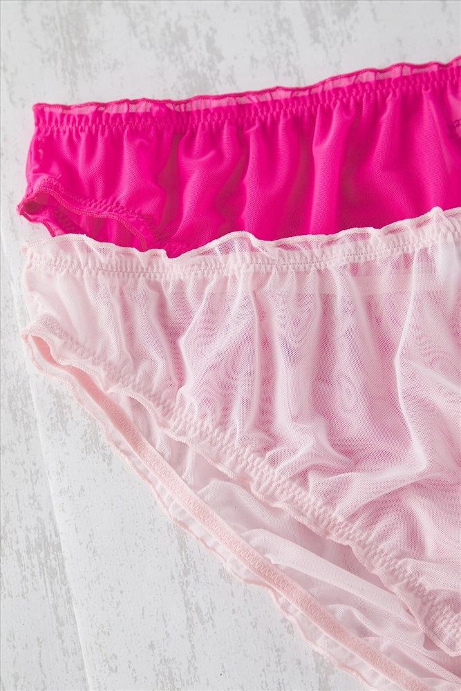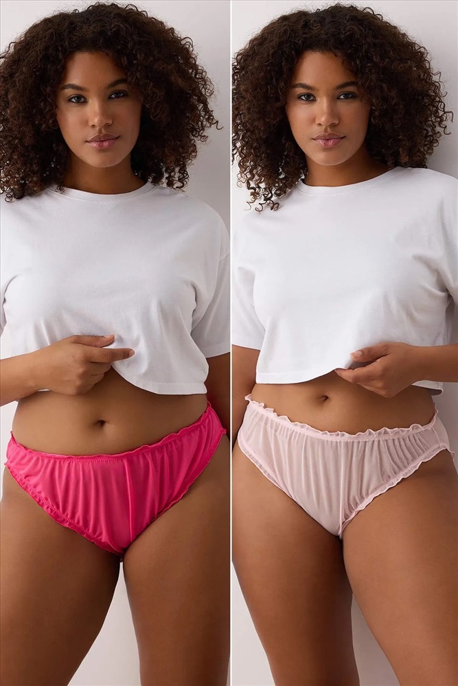 Lila-Pembe 2'li Paket Lastikli Tül Klasik Büyük Beden Külot TBBSS25CM00002
