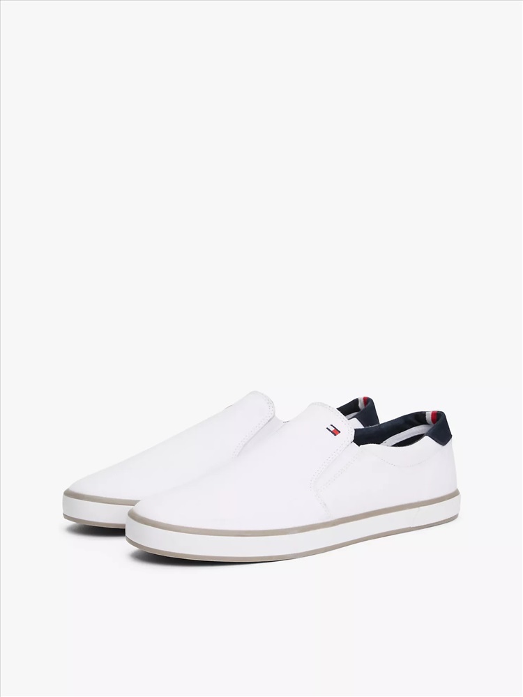 Tommy Hilfiger men's sneaker. Casual has never looked so cool with our minimalist slip-on sneakers. Featuring our microflag logo in a low-cut silhouette, pair them with your favorite jeans or cuffed chinos for a laid-back look.