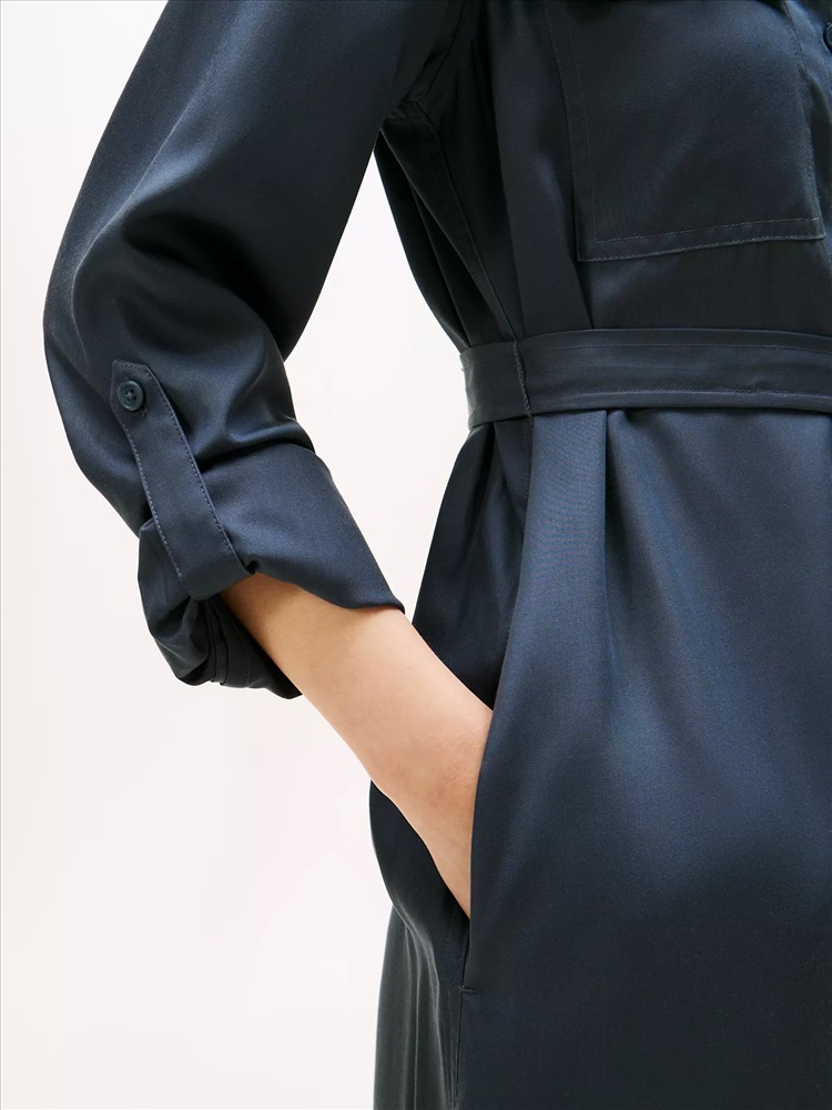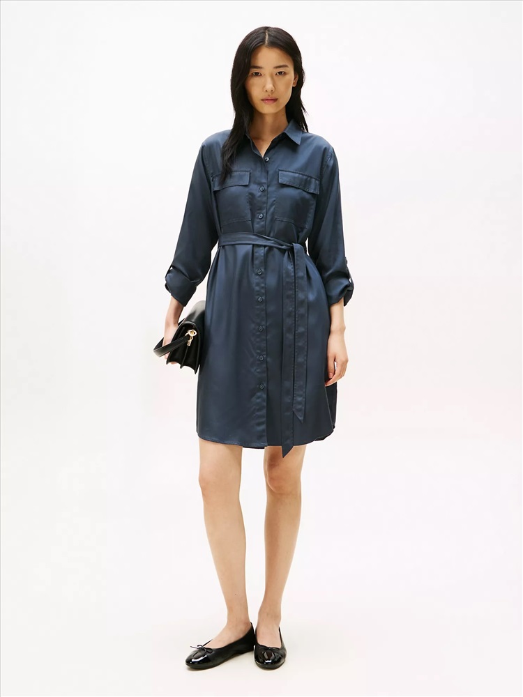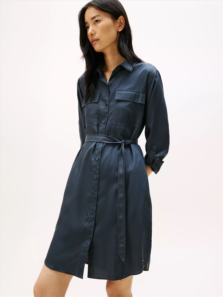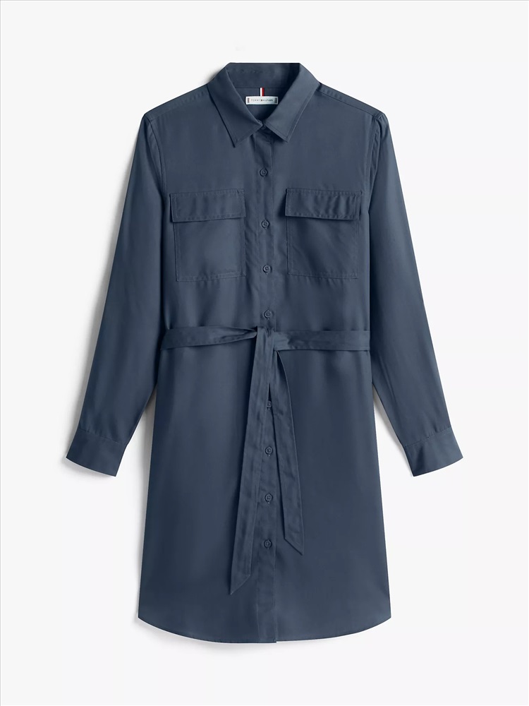 Tommy Hilfiger women's dress. Work-week dressing just got easier. Our utility-inspired shirtdress features chest pockets and a belted waist. Made from lightweight, smooth lyocell, this piece falls with a flattering drape.